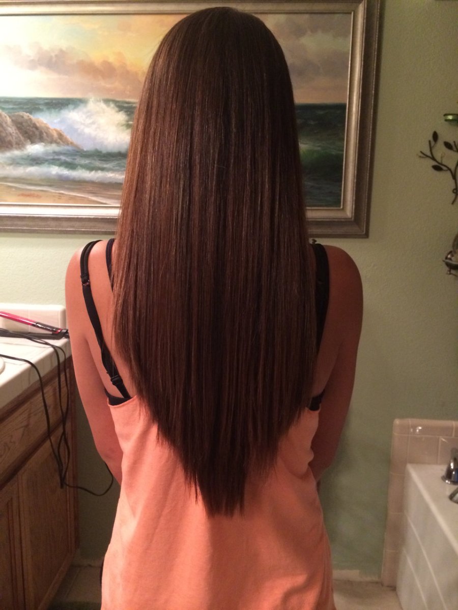 Стрижка треугольником сзади на длинные волосы