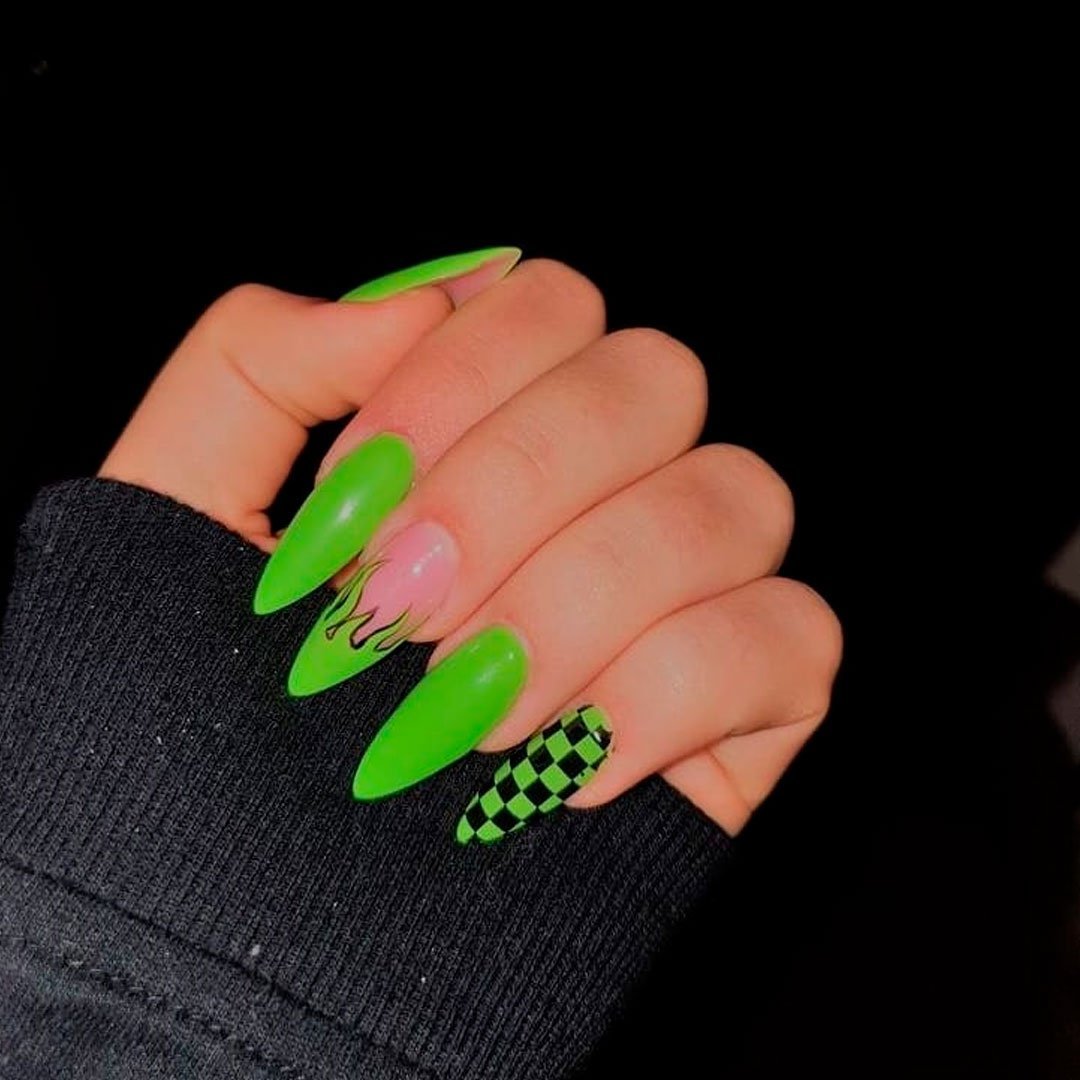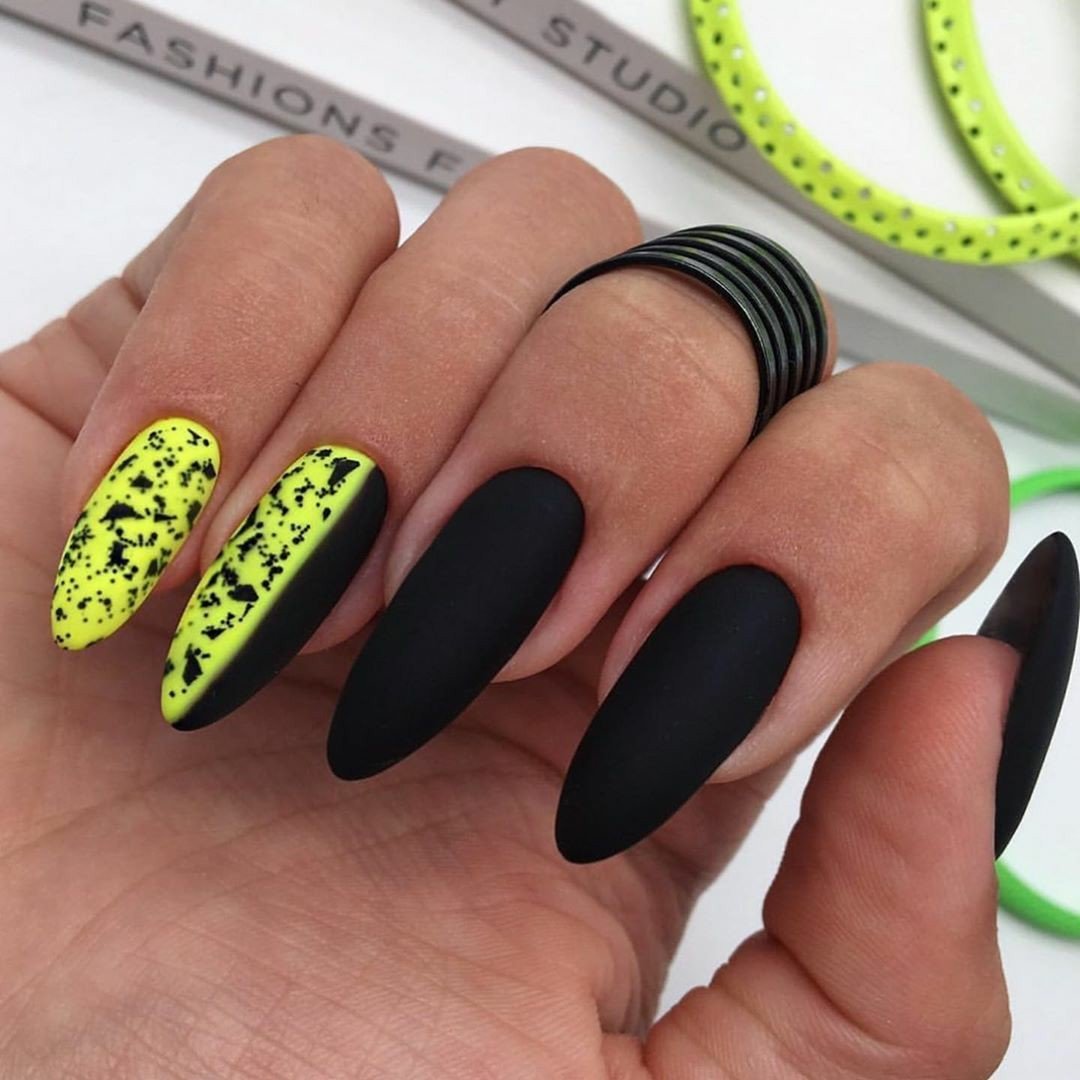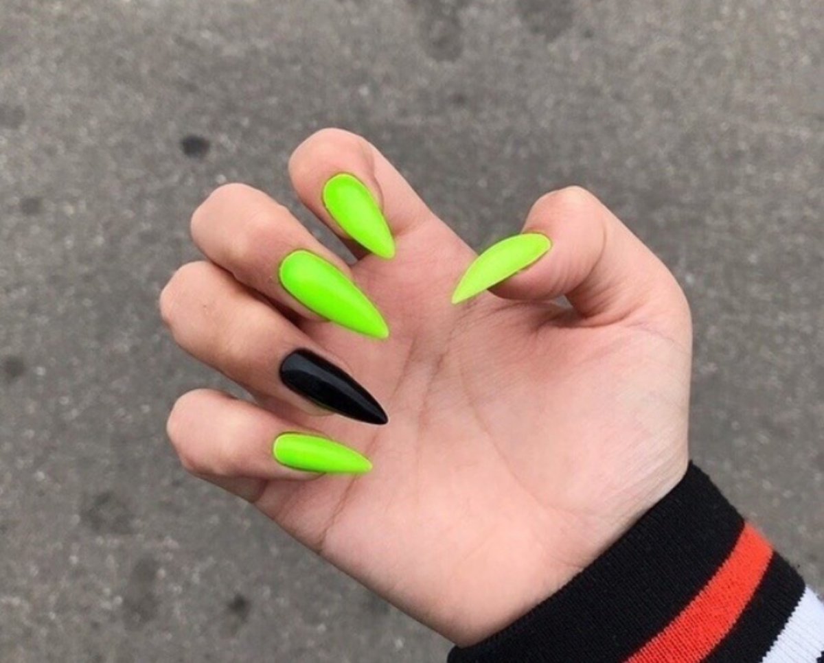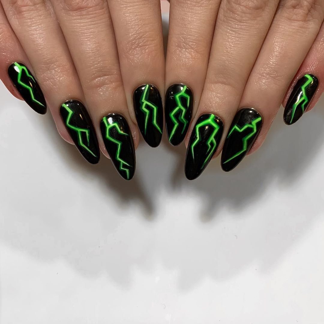 Маникюр черный с неоновым зеленым
