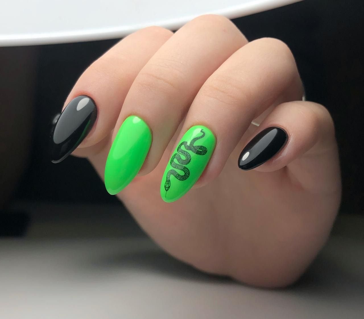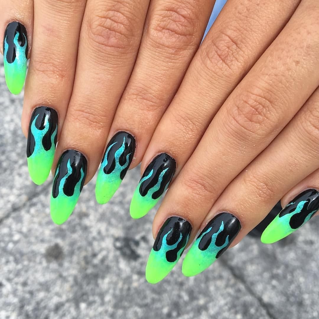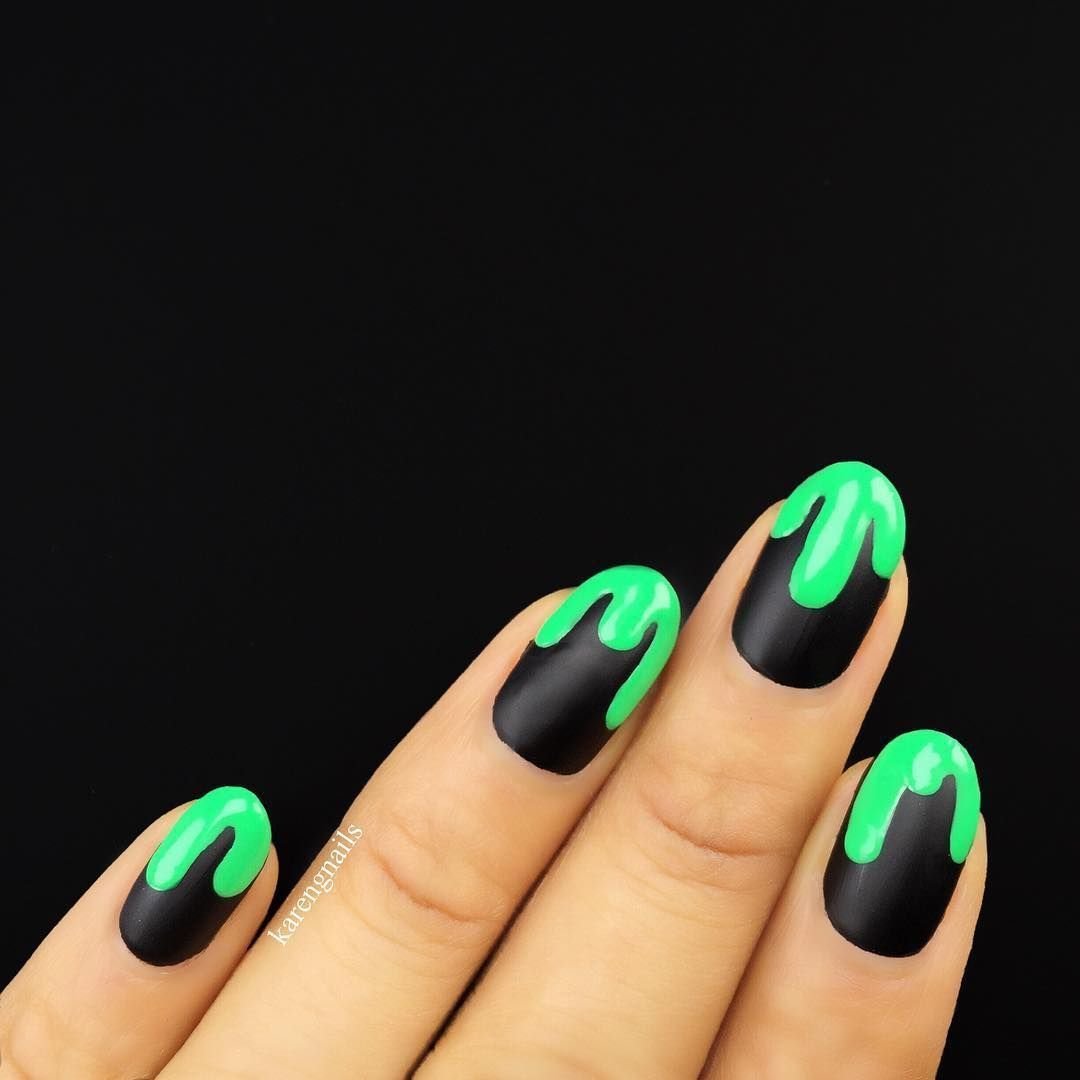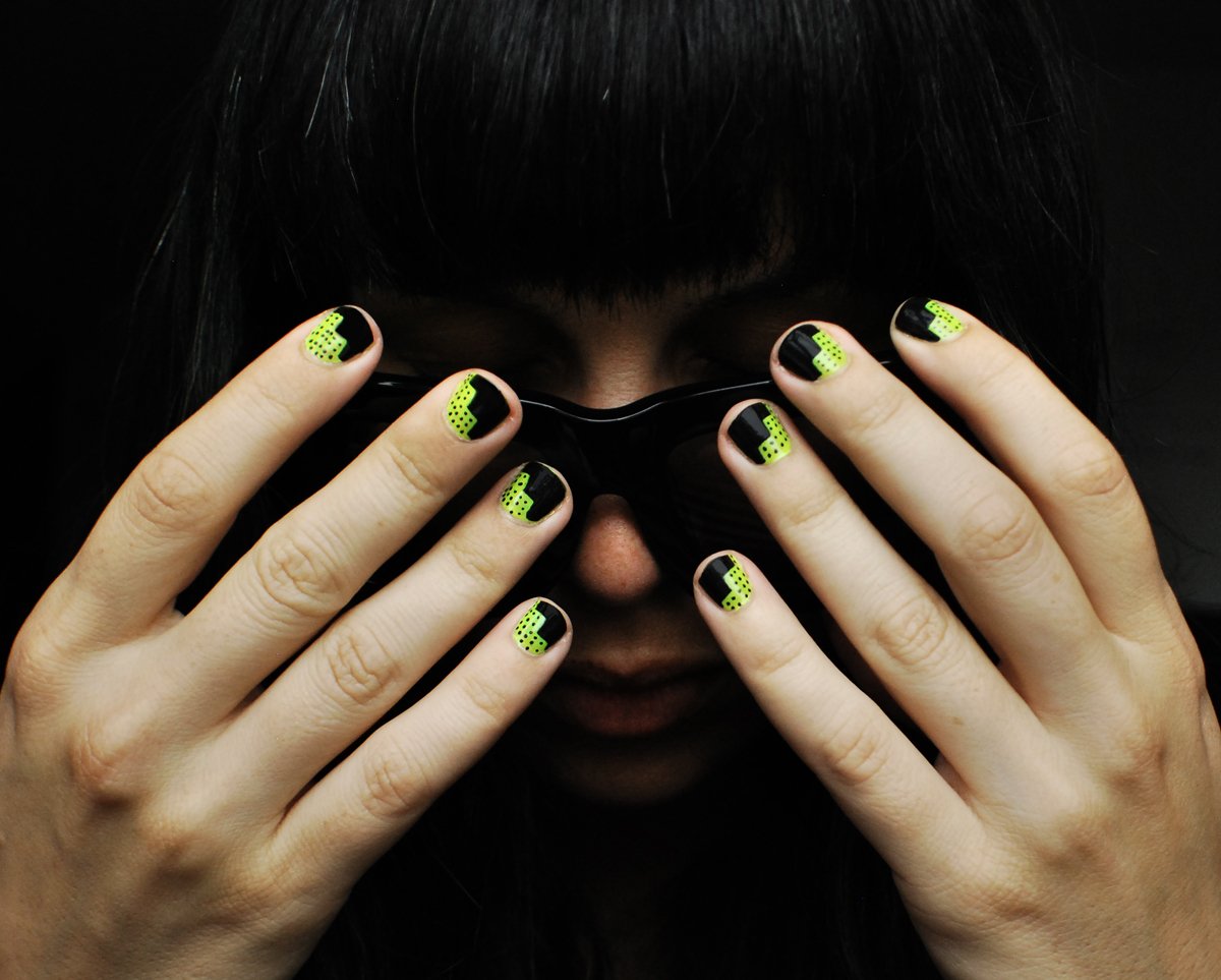 Маникюр черный с неоновым зеленым