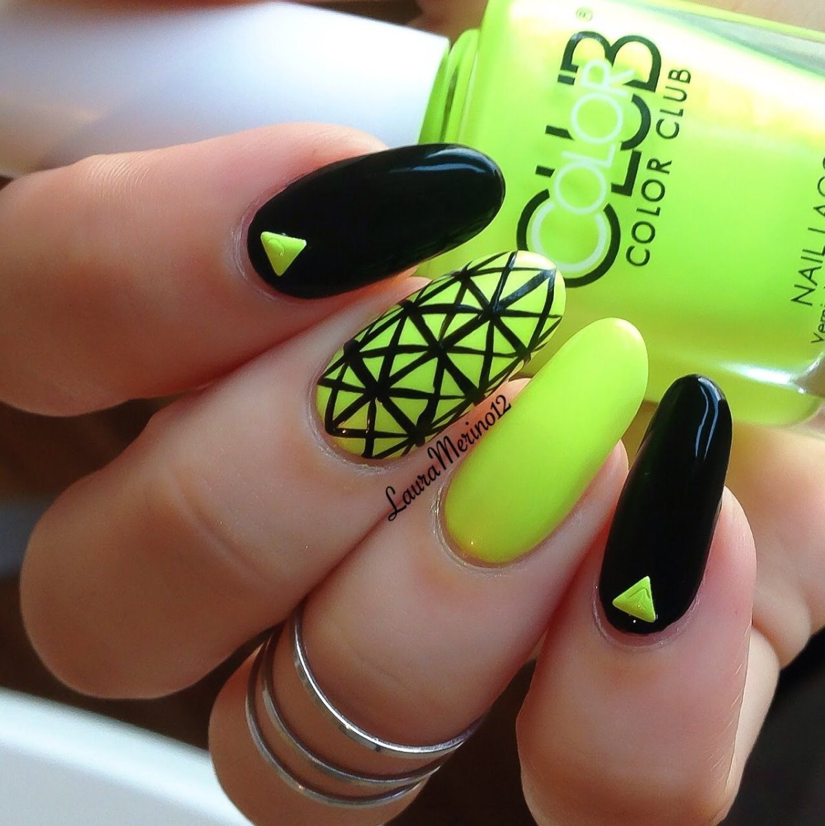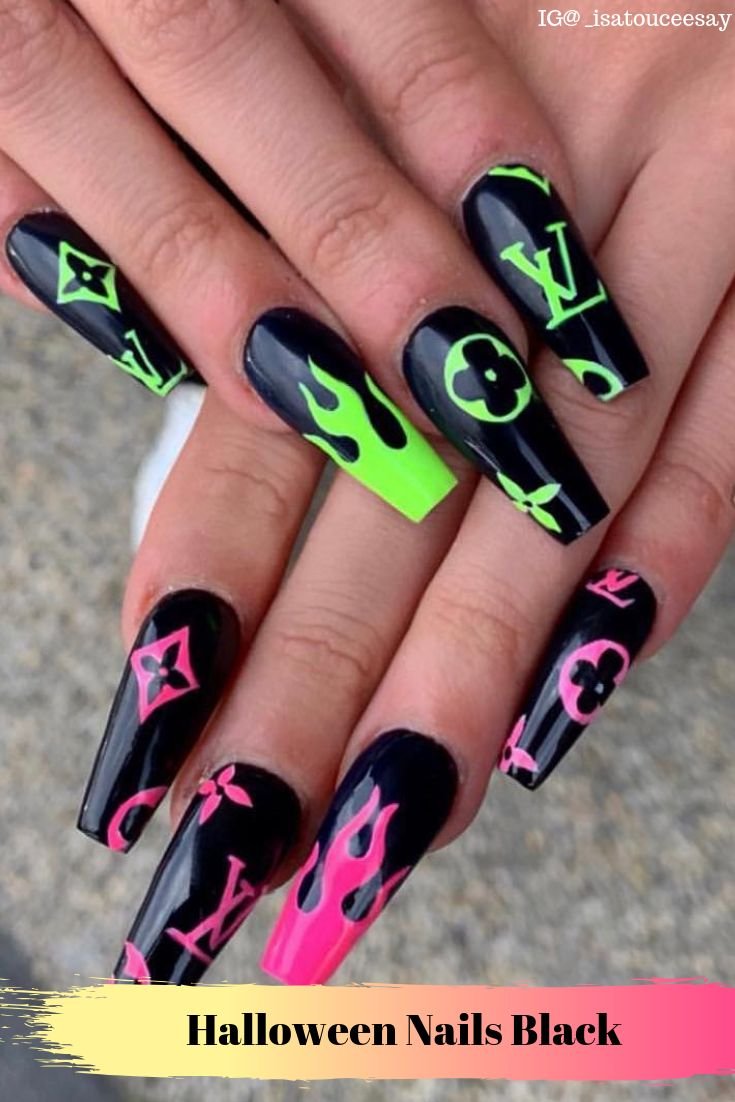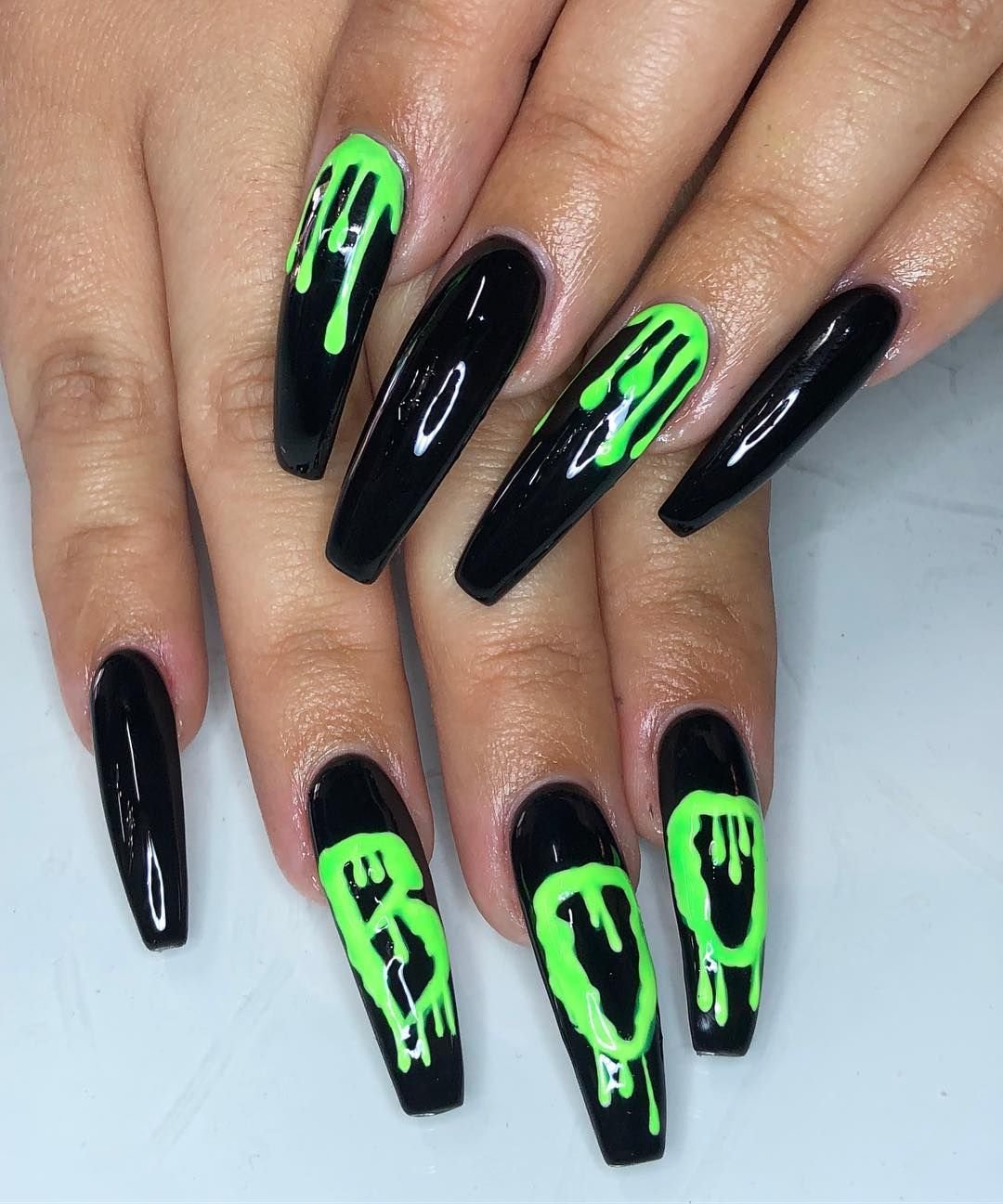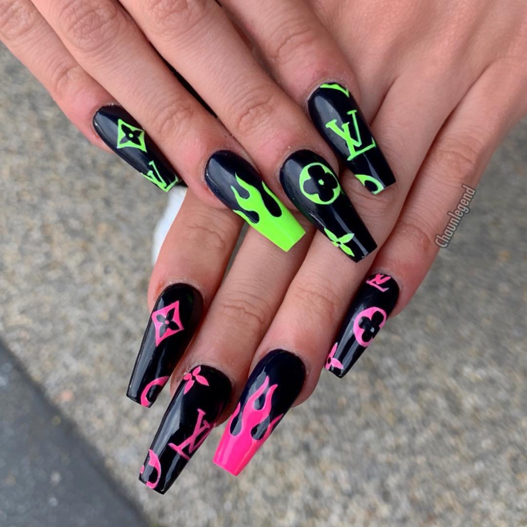 Маникюр черный с неоновым зеленым