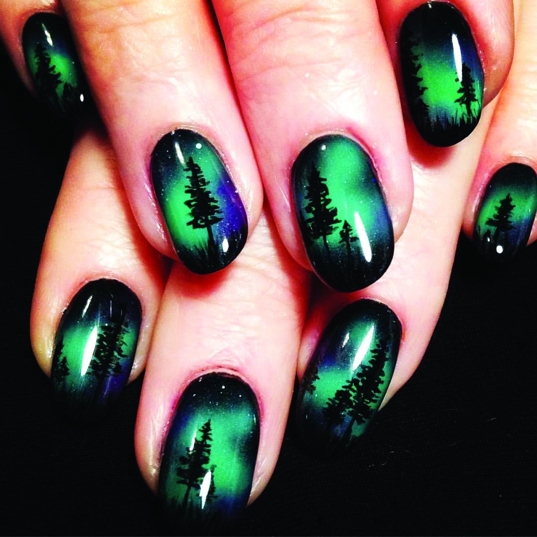 Северное сияние на ногтях