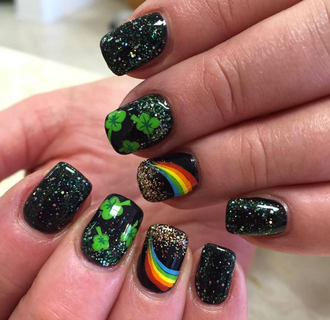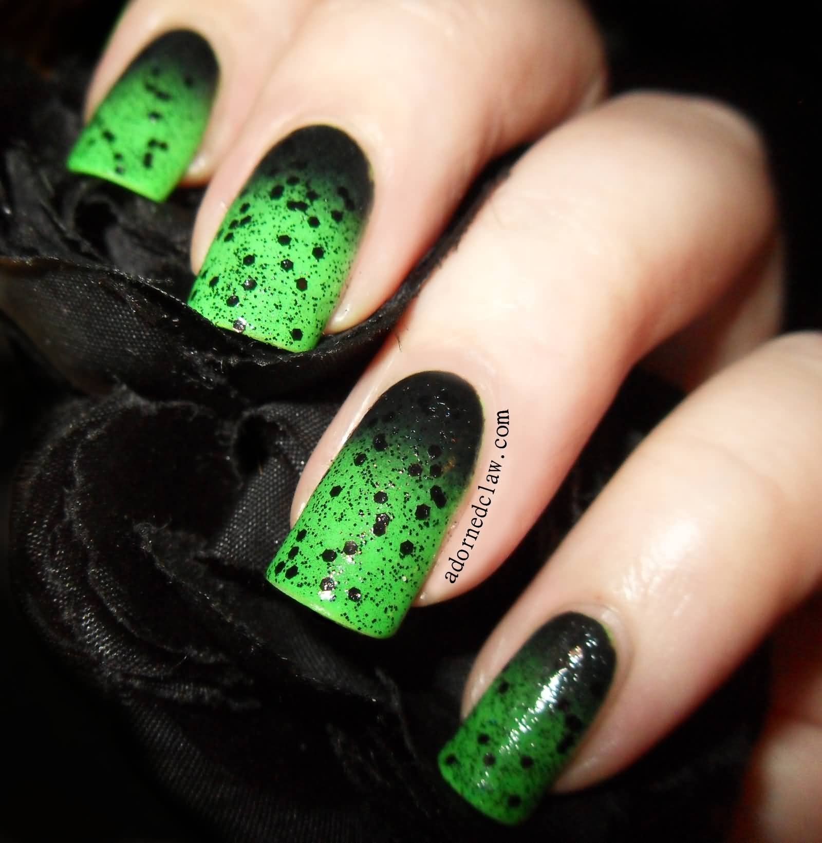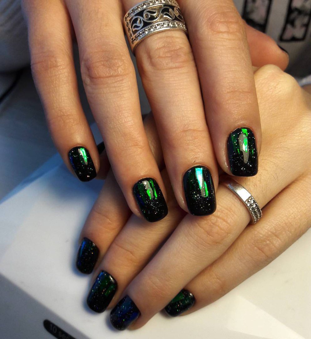 Маникюр черный с зеленым
