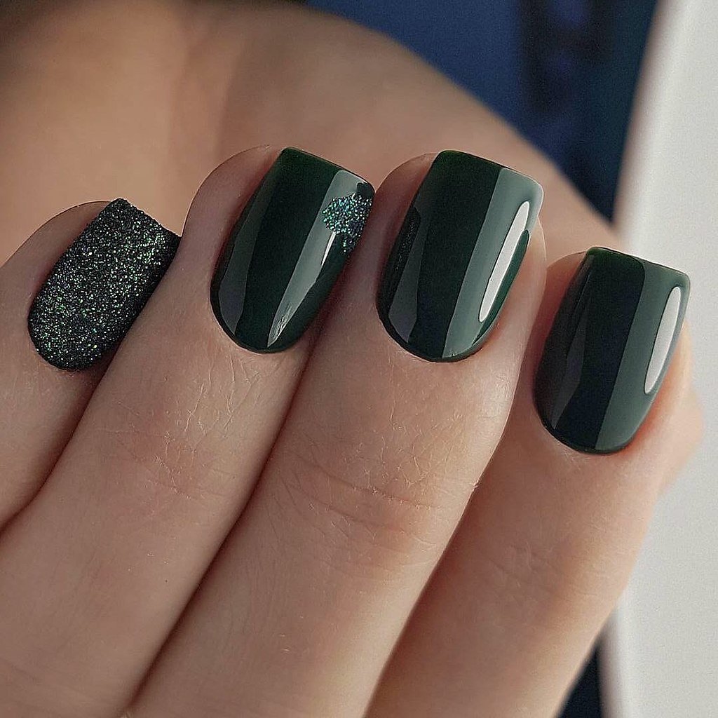 Маникюр темно-зеленый
