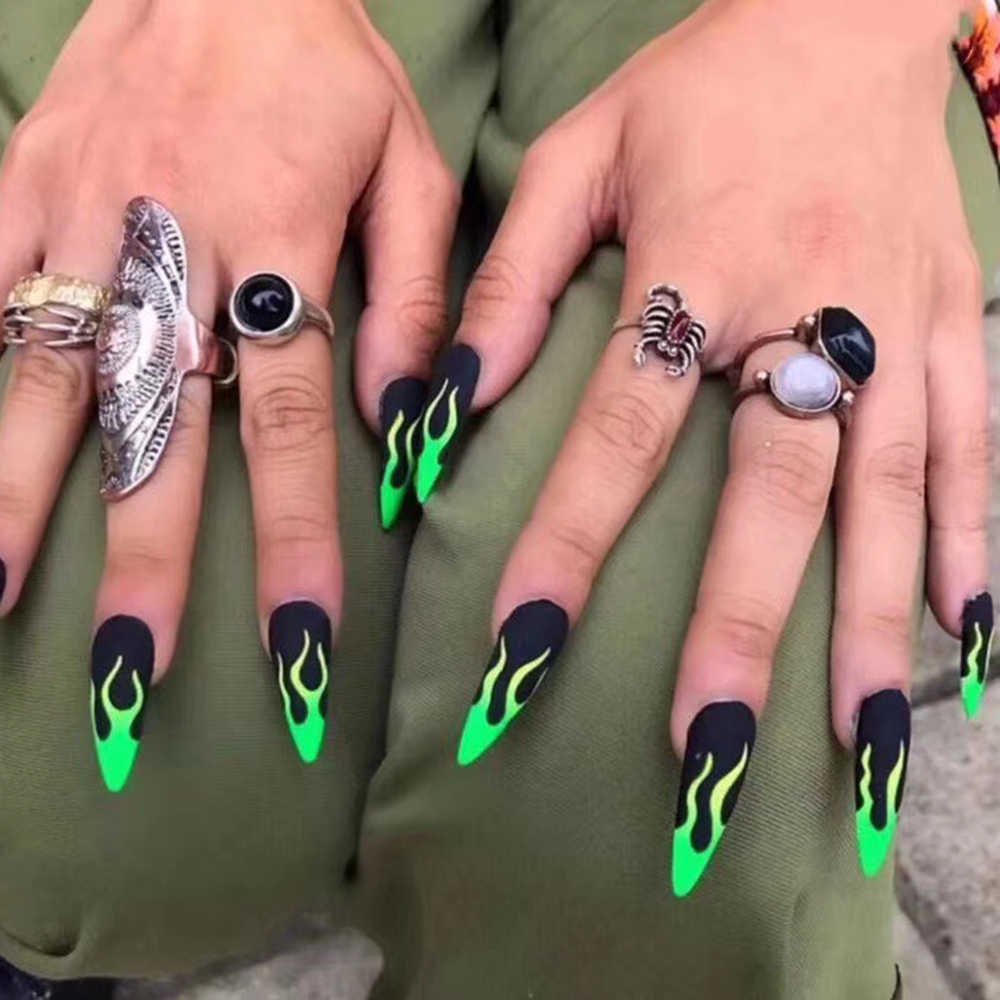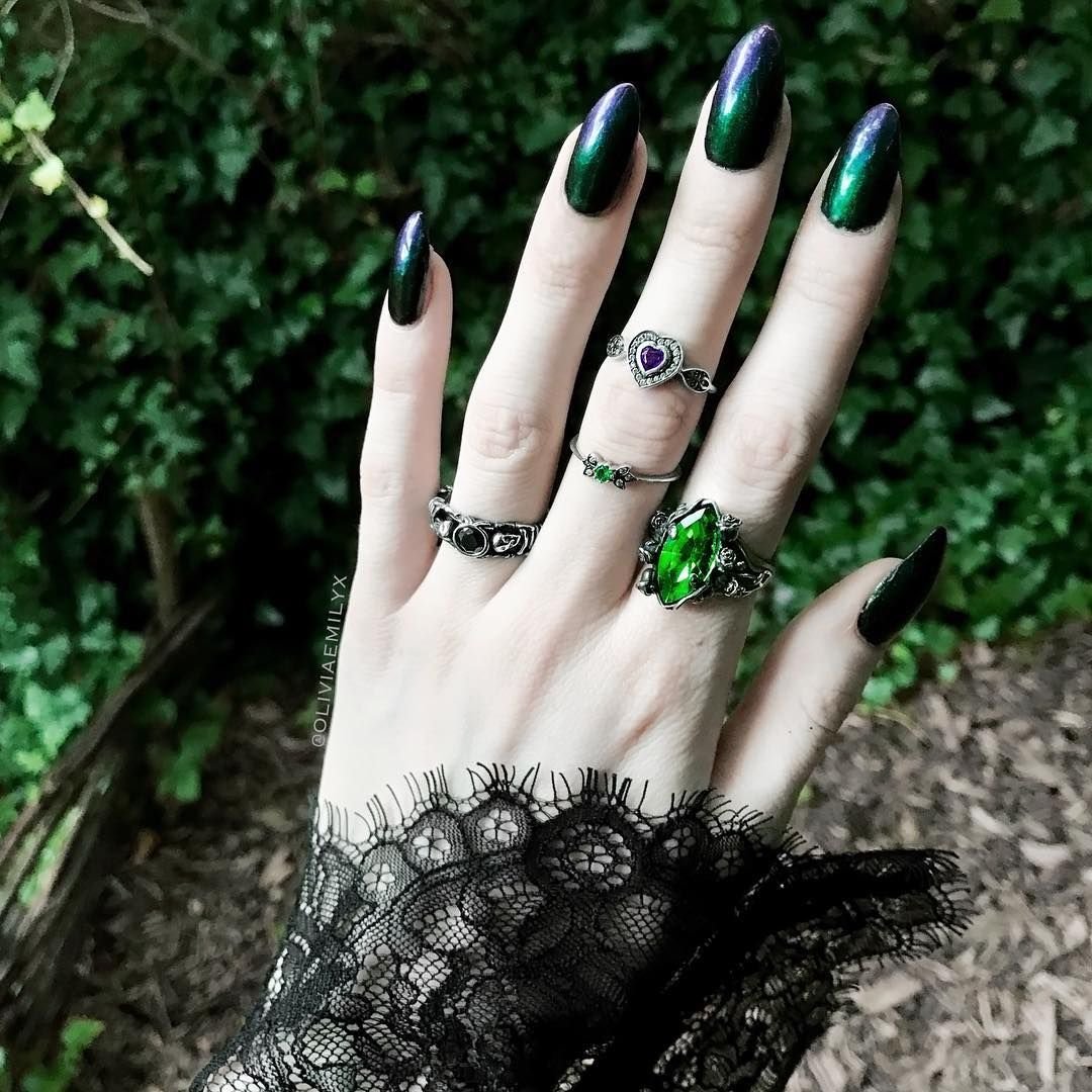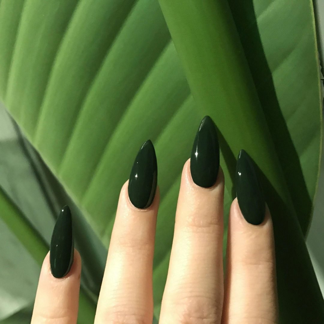 Ногти заостренные зеленые темно