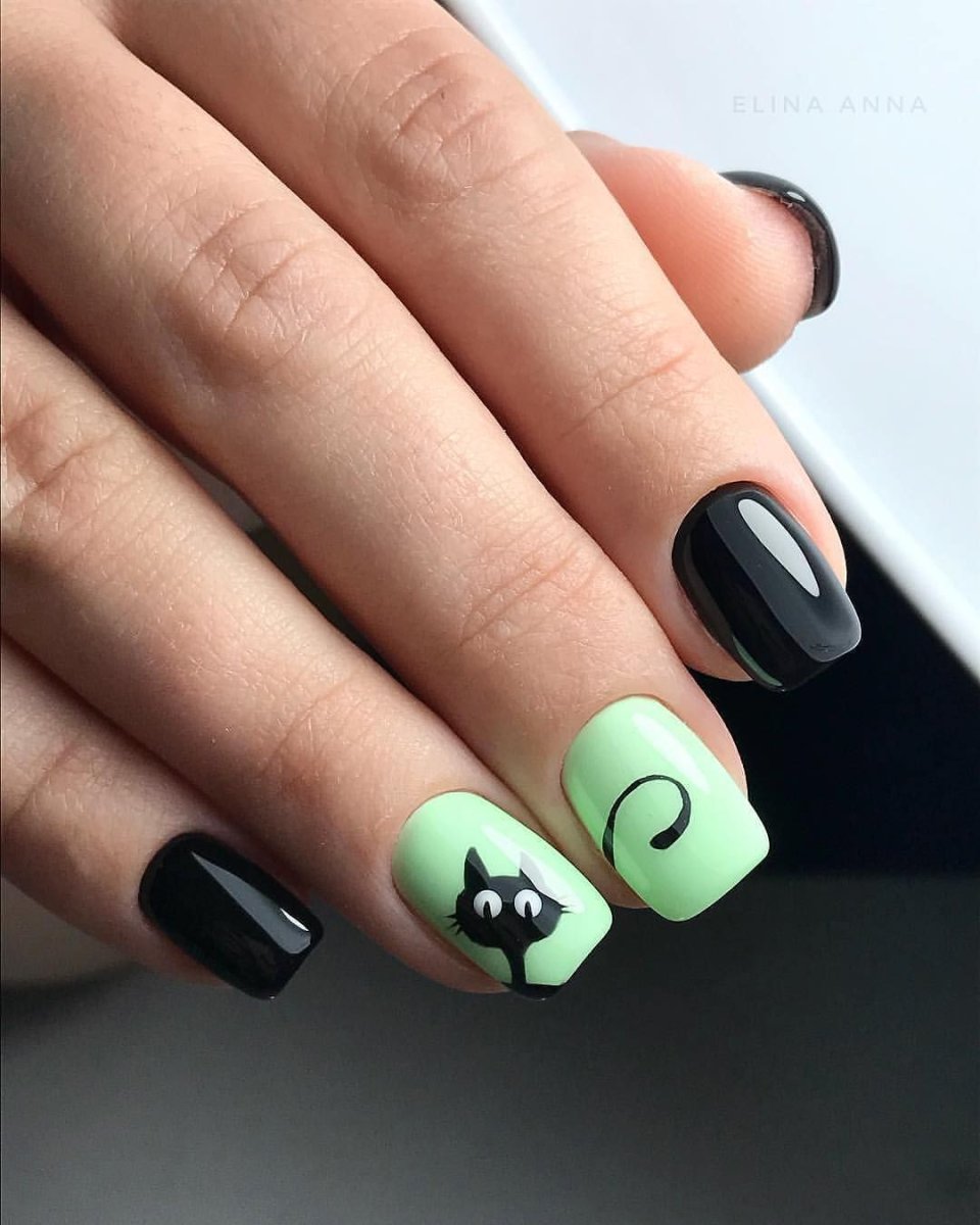 Черно салатовый маникюр