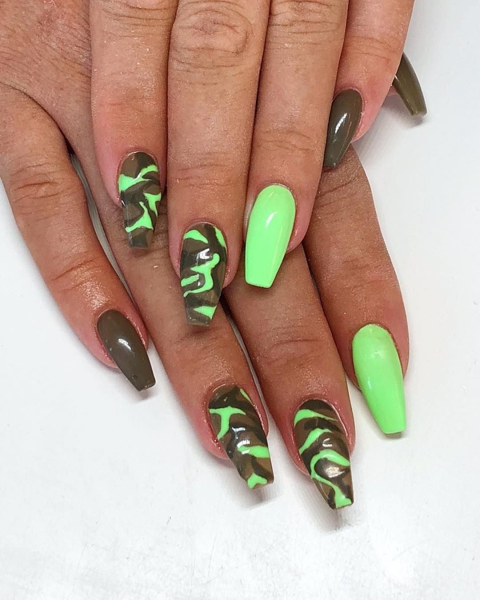 Черно салатовый маникюр на длинные ногти