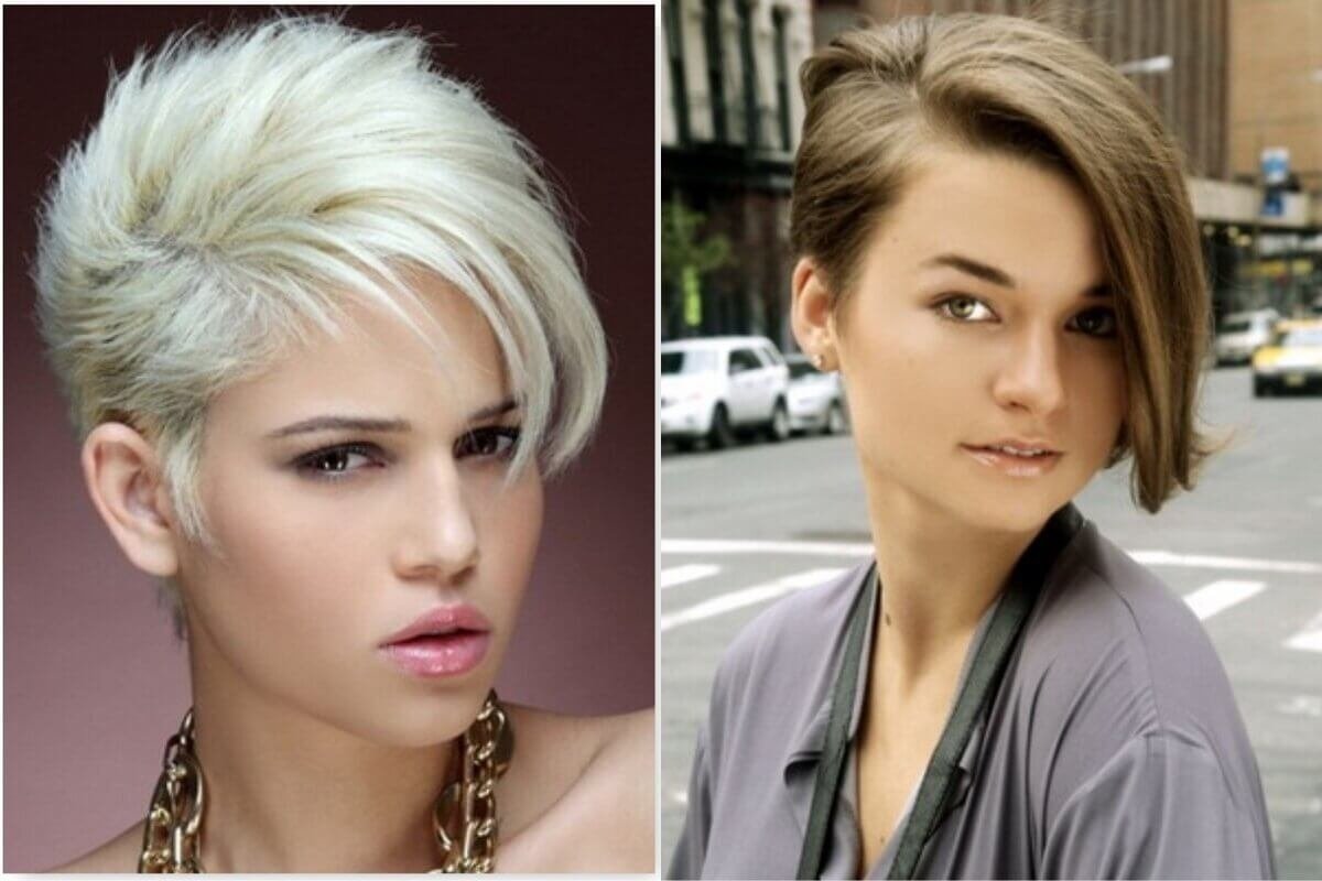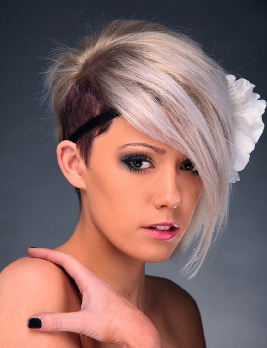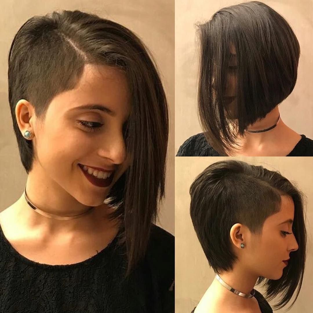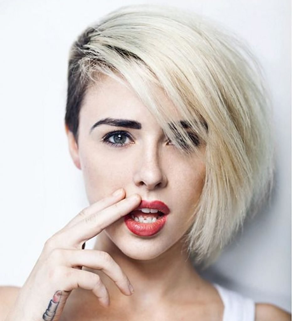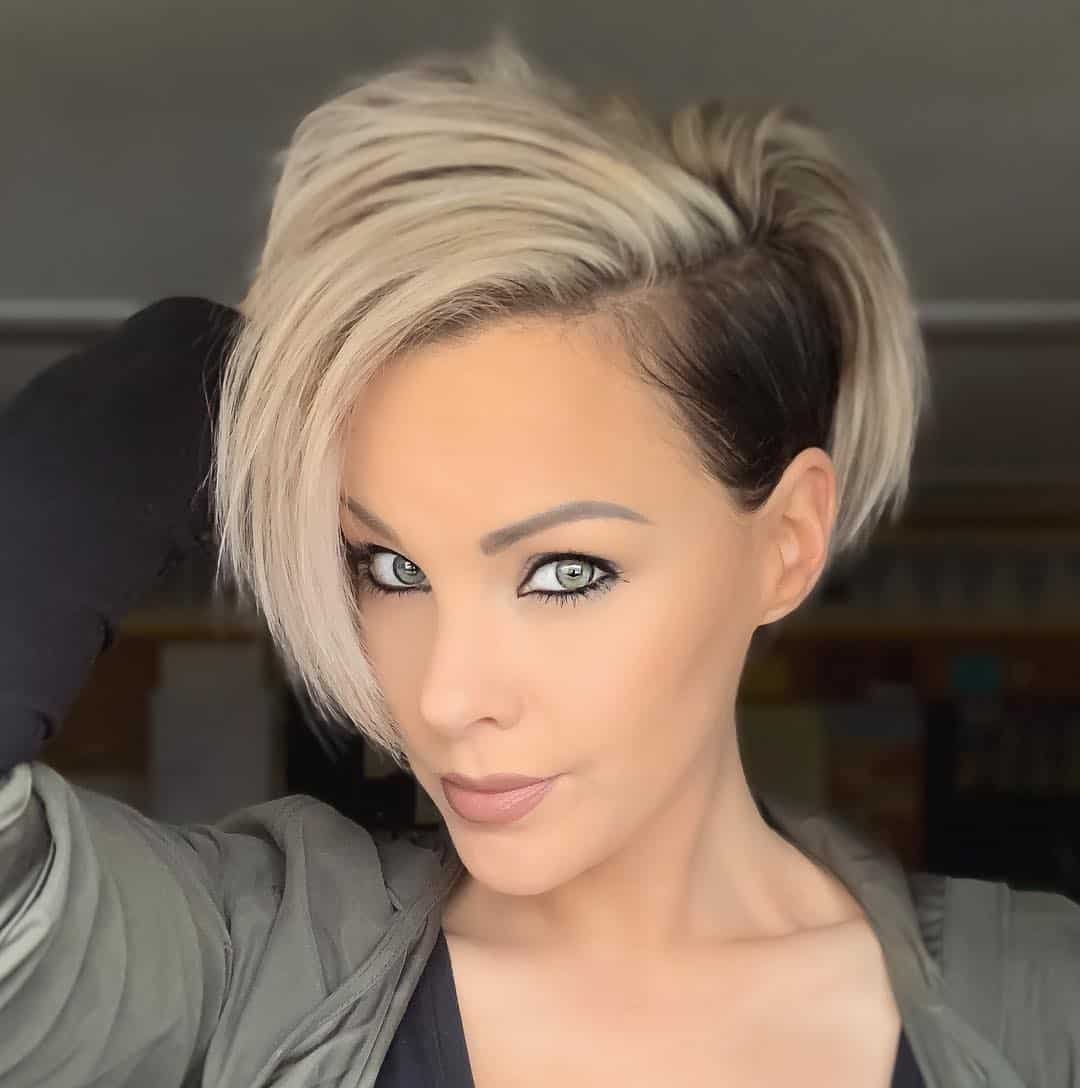 Стрижки на короткие волосы с косой челкой и выбритым виском