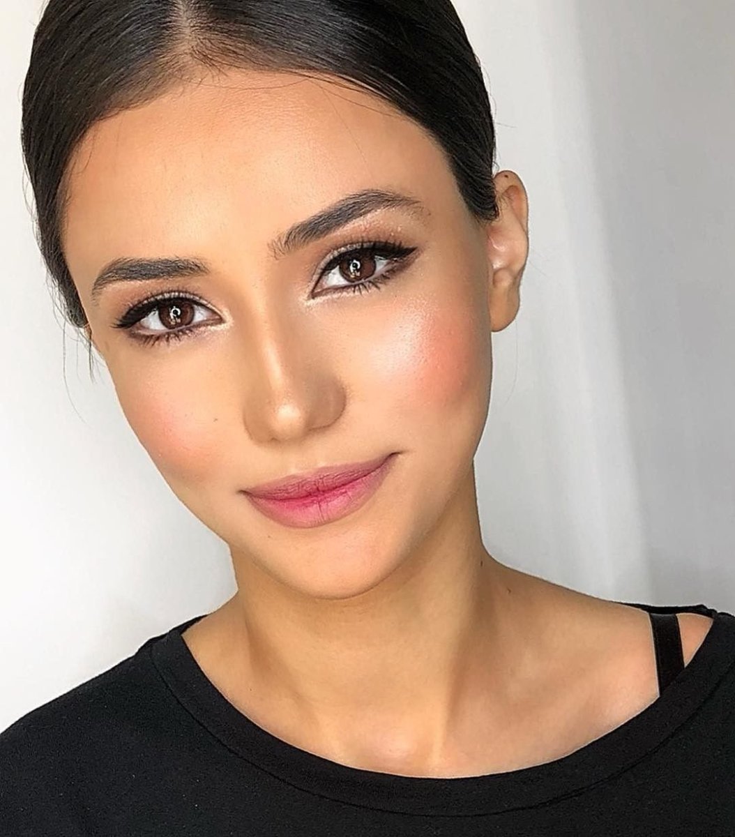 Повседневный макияж для женщины 35 лет с черными волосами и худеньким