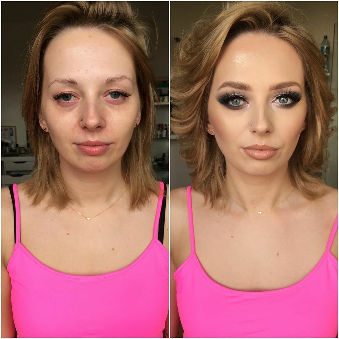 Девушки до и после макияжа