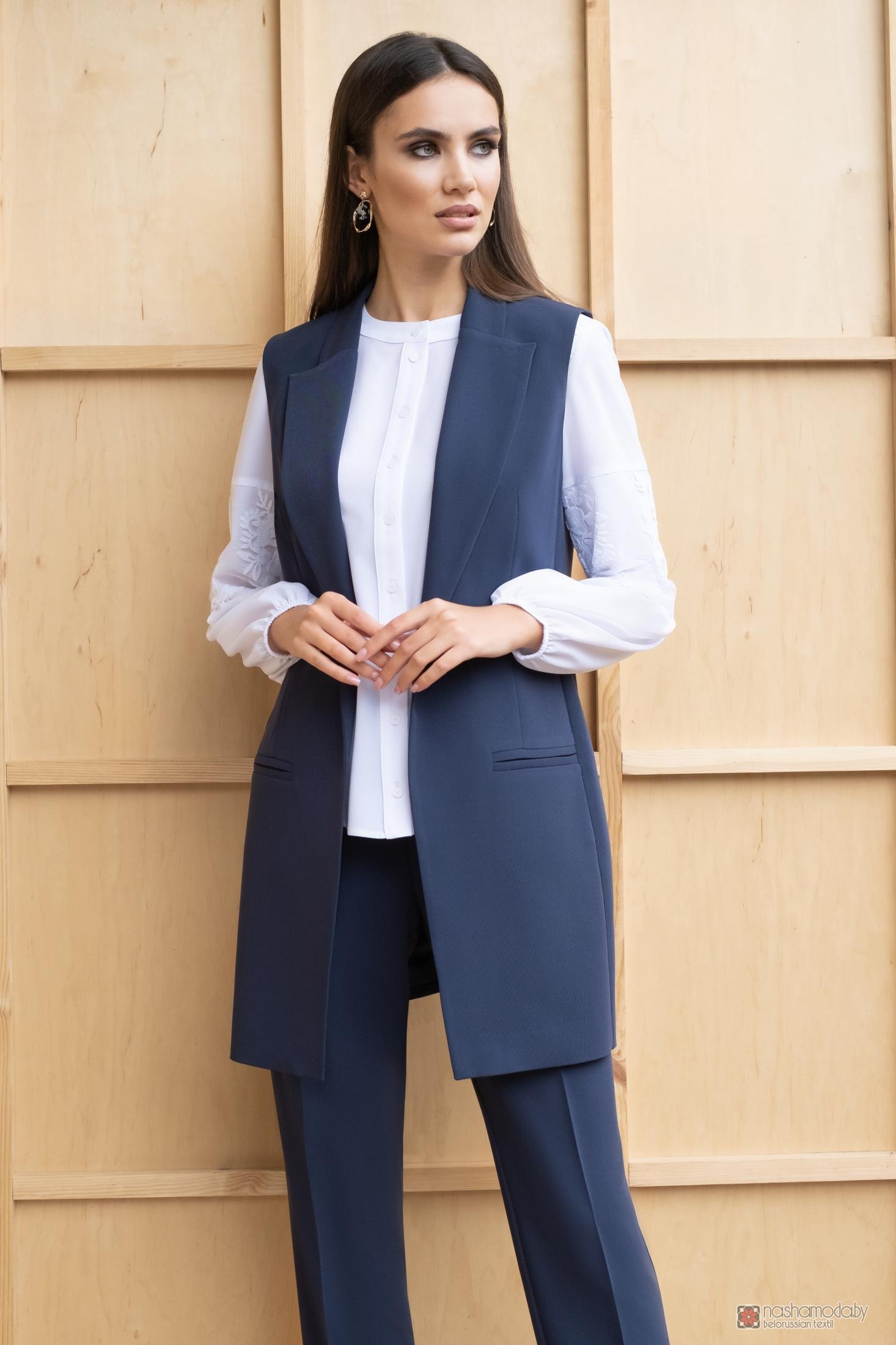 Брючный костюм с удлиненным жилетом