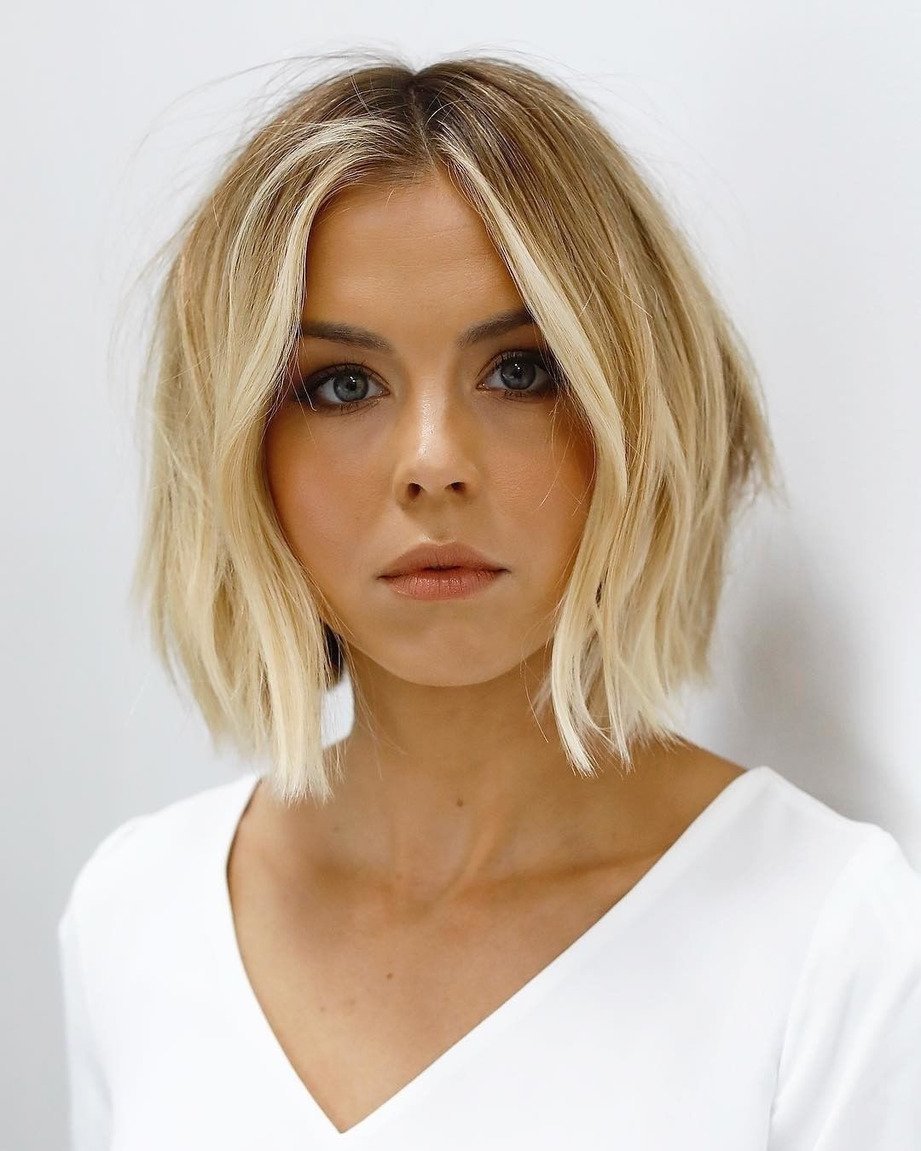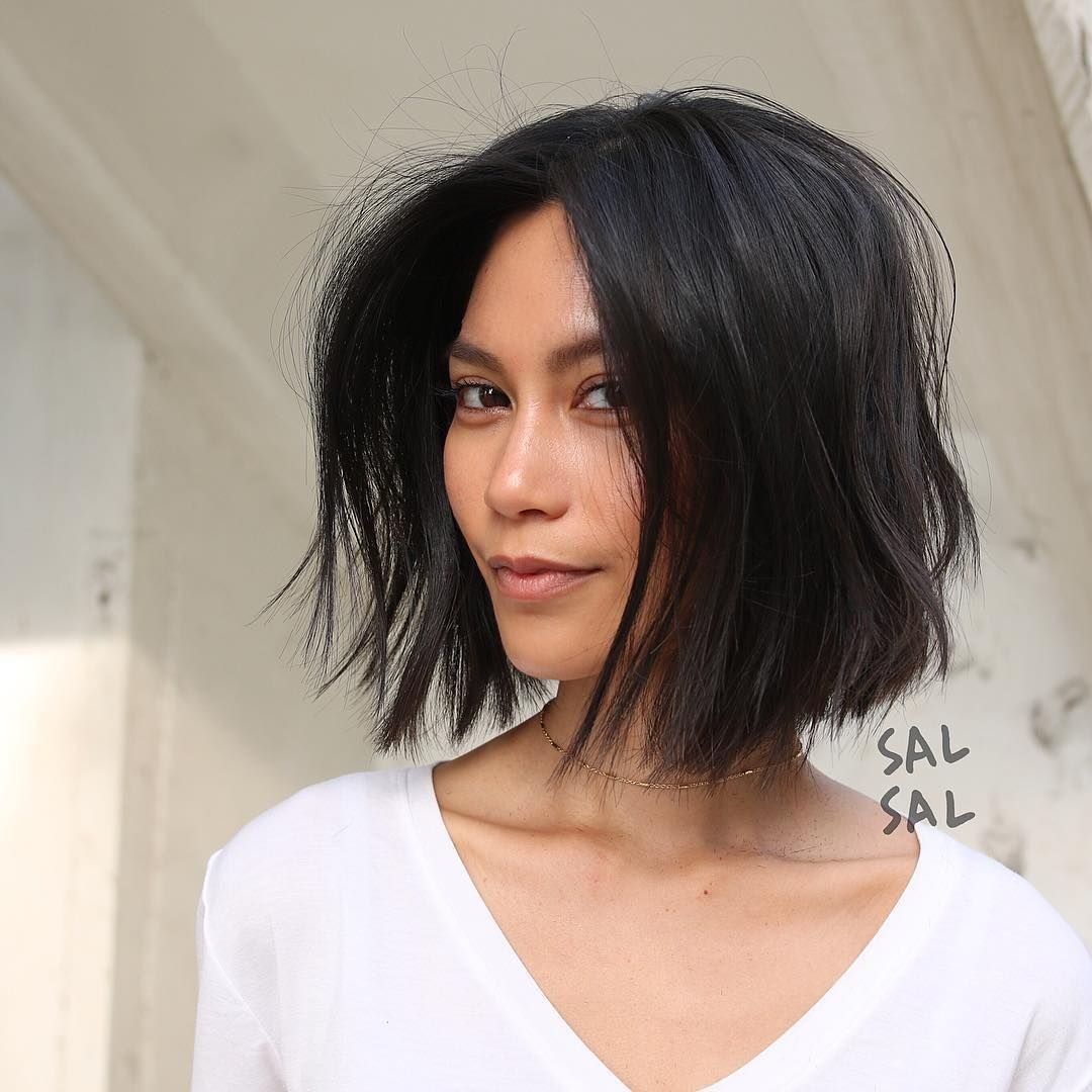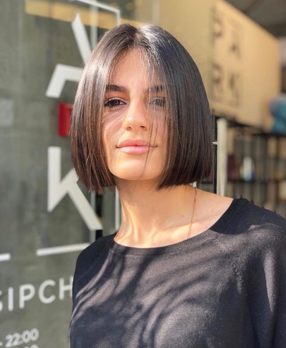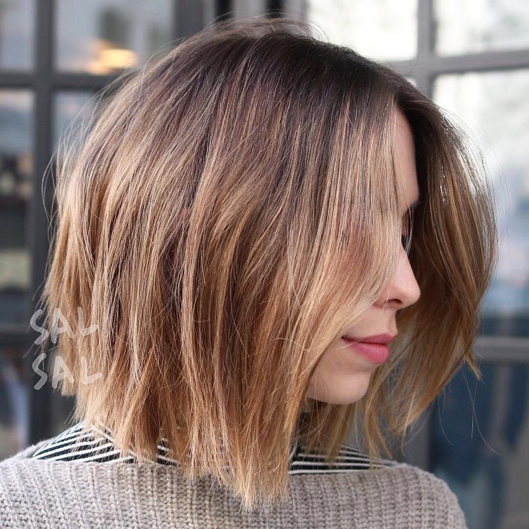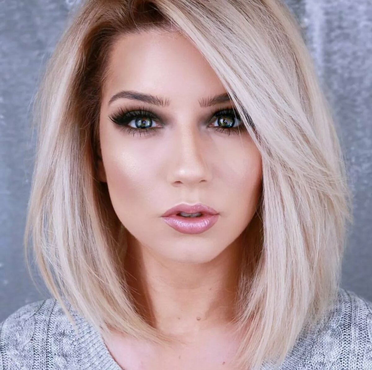 Стрижка каре-лесенка на средние волосы с челкой 2021