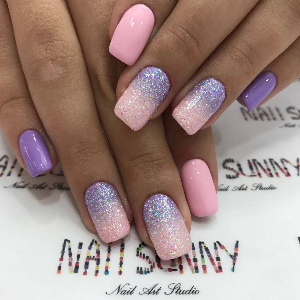 Маникюр весенний градиент с блестками