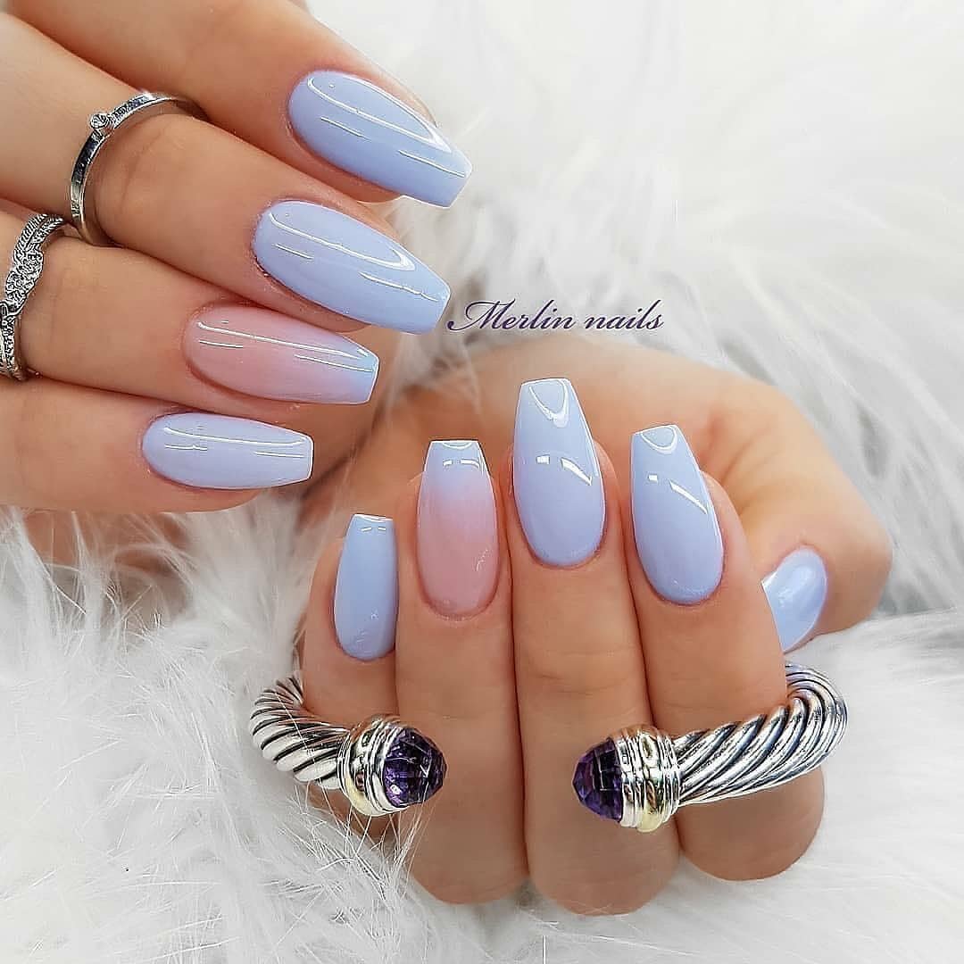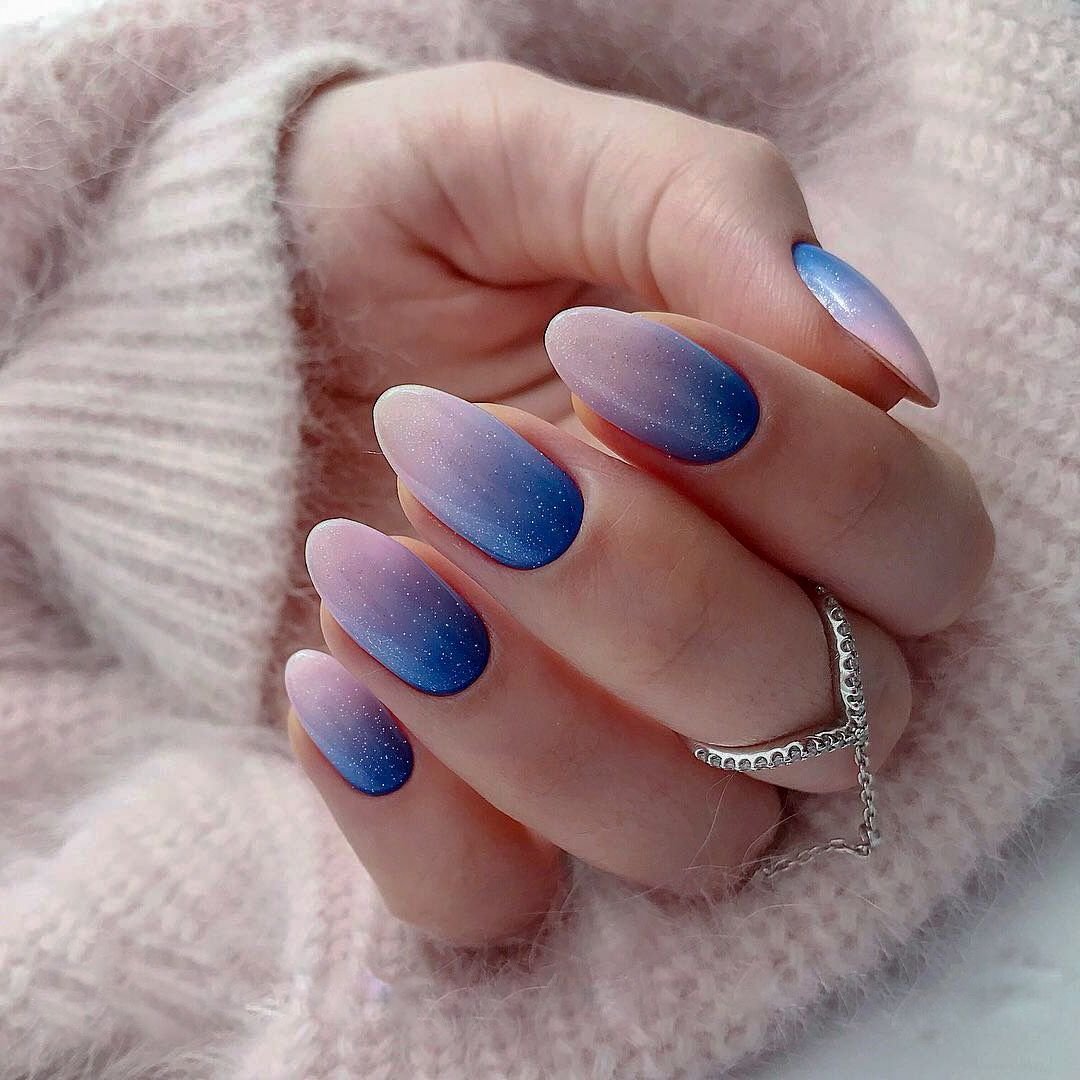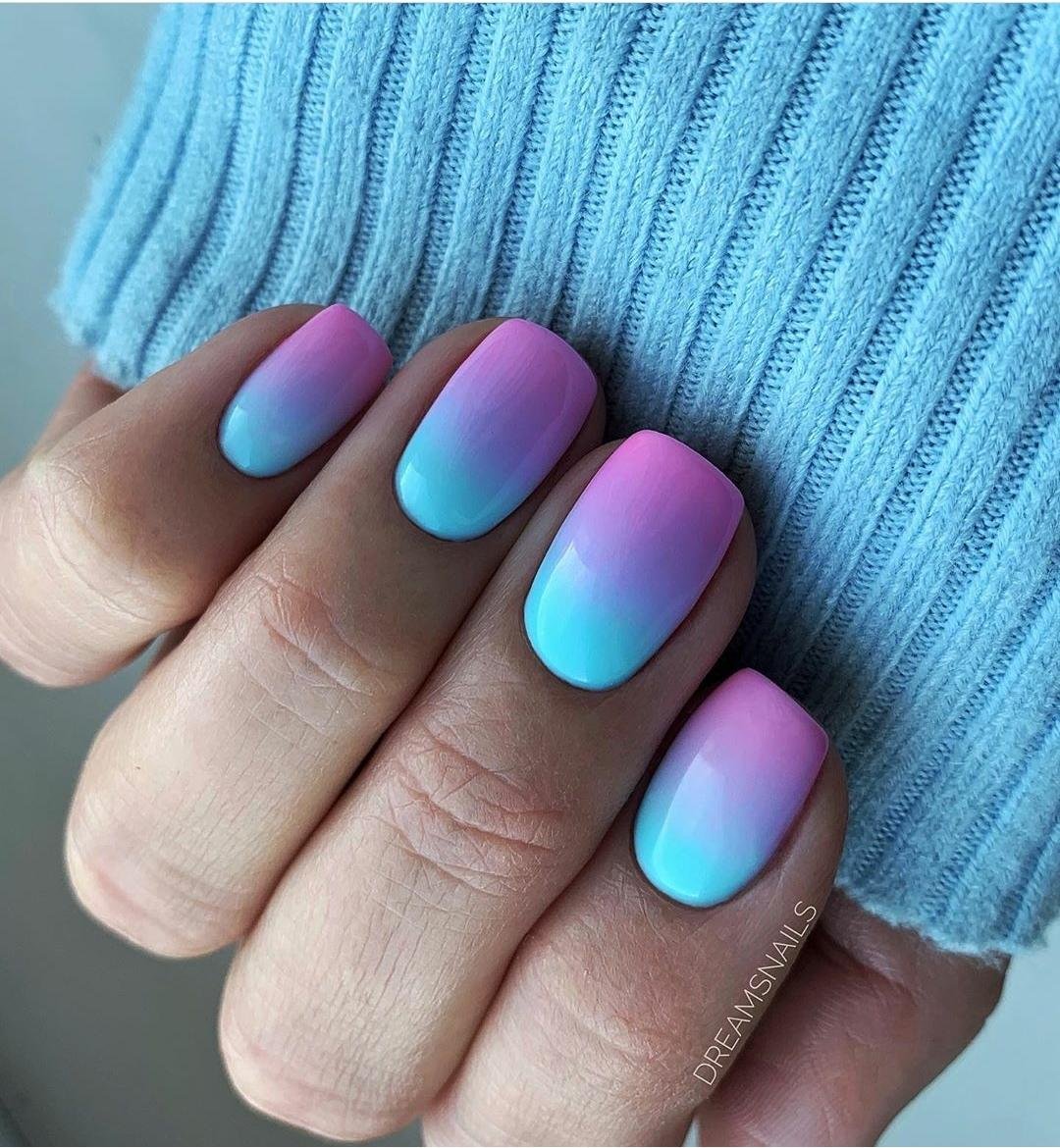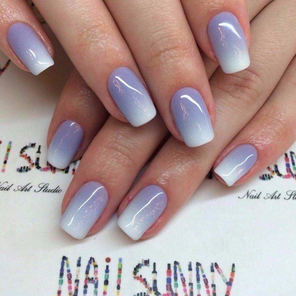 Голубое омбре на ногтях