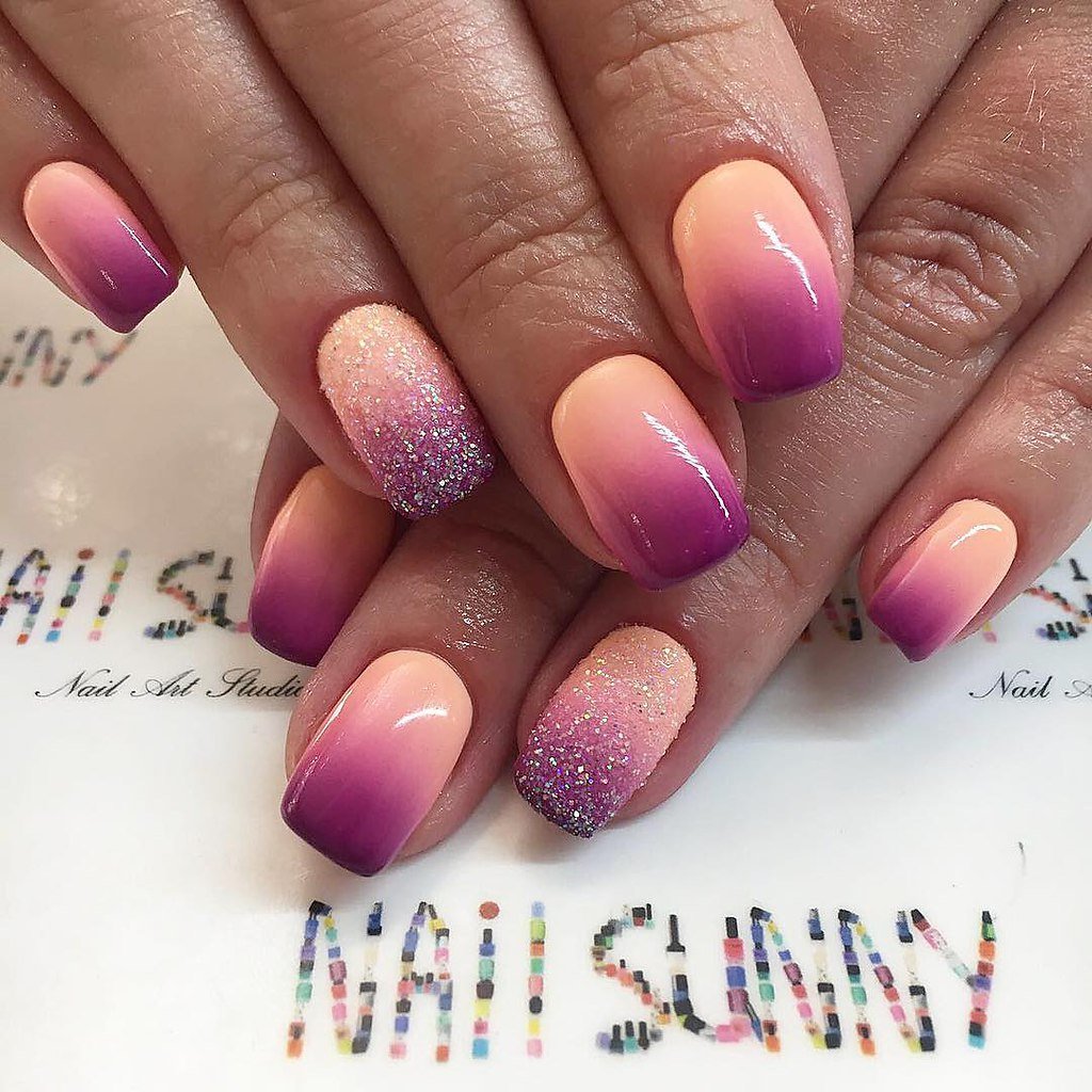 Маникюр градиент розовый с фиолетовым