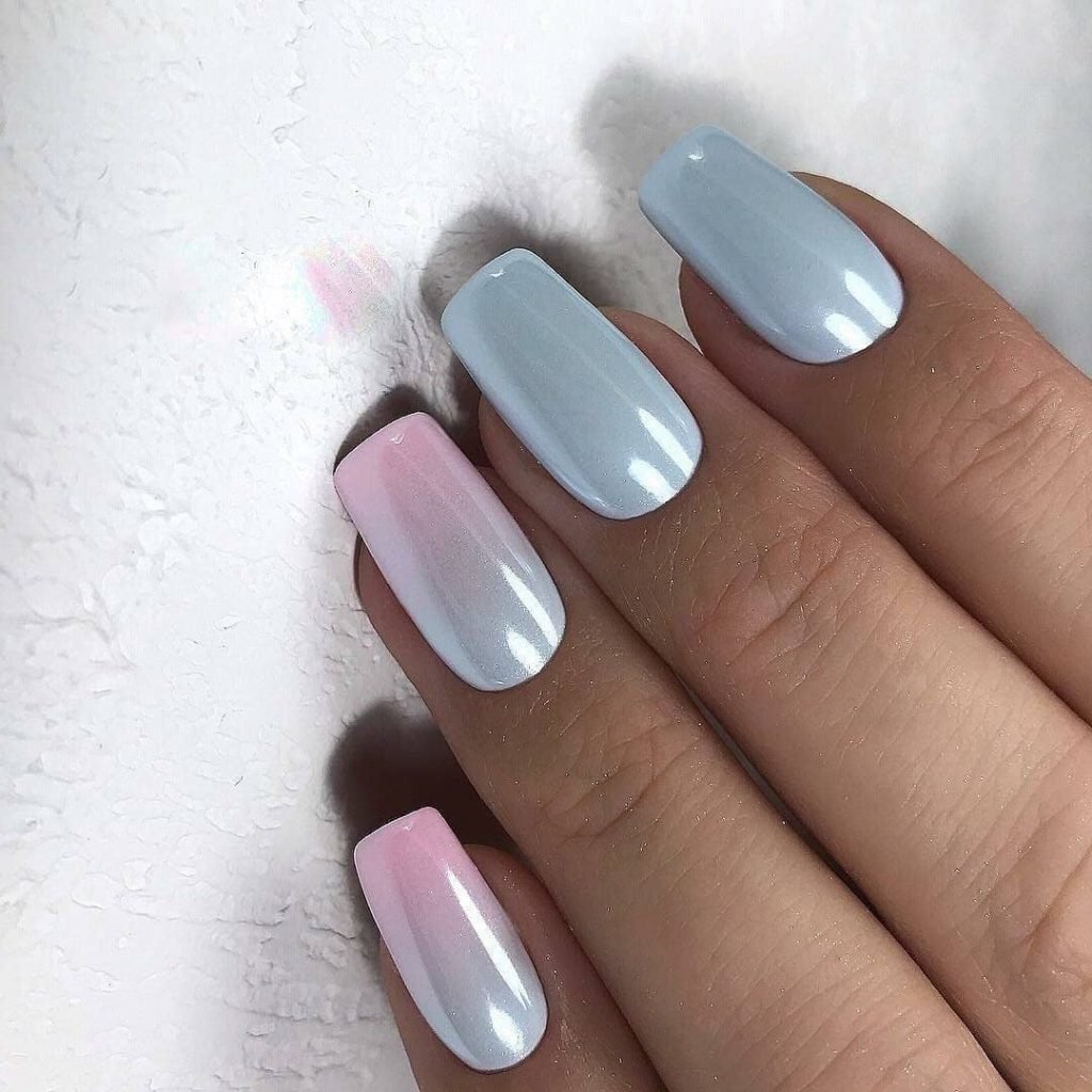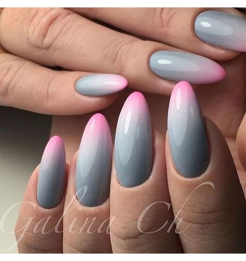 Маникюр градиент розовый с серым