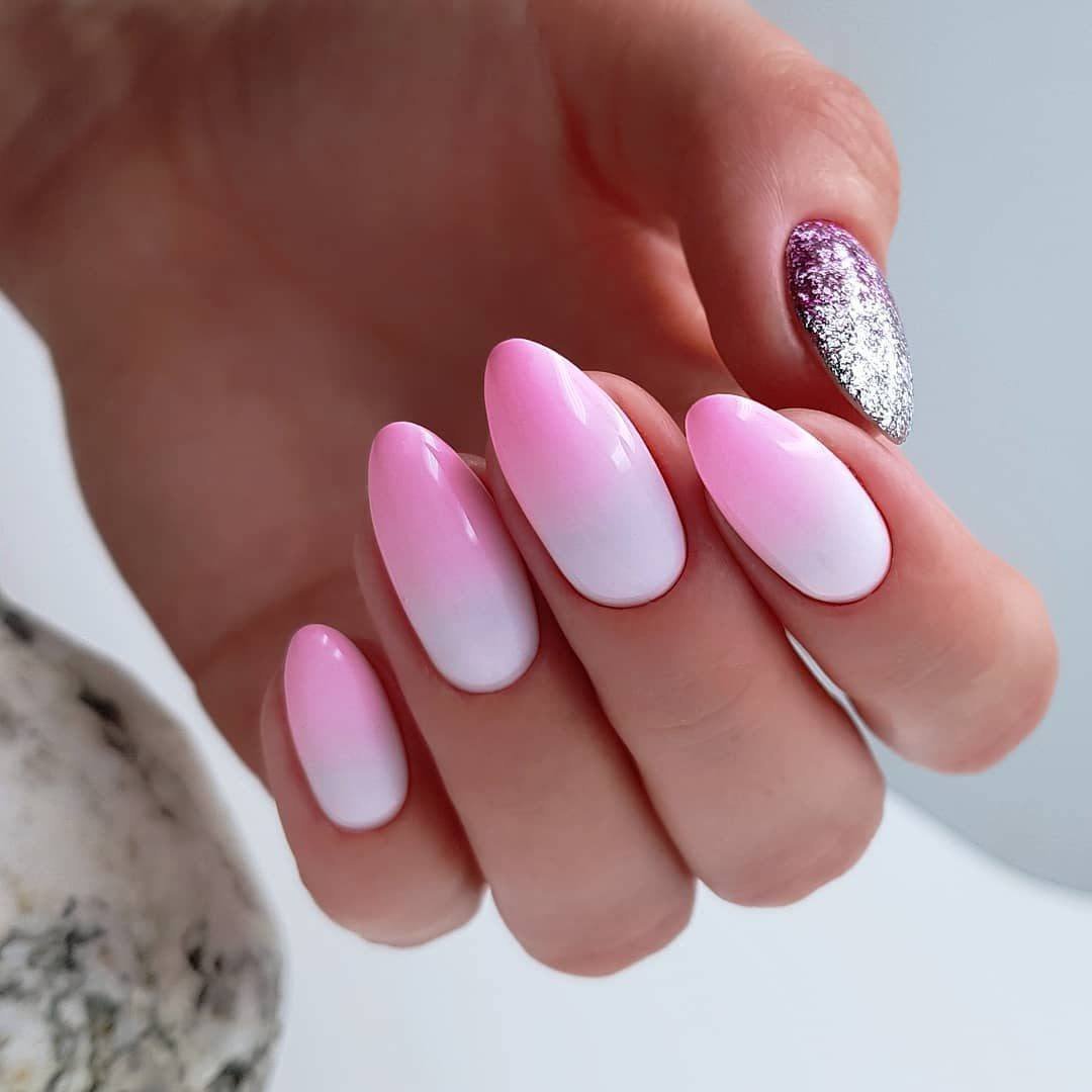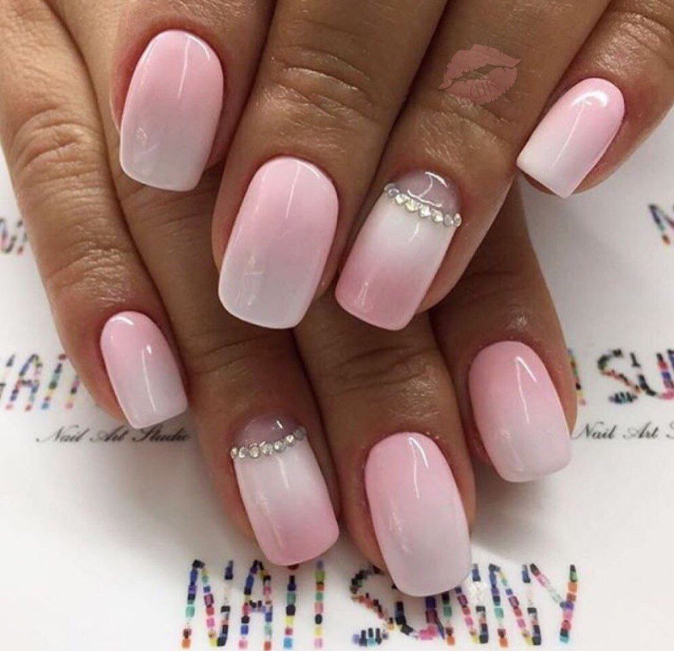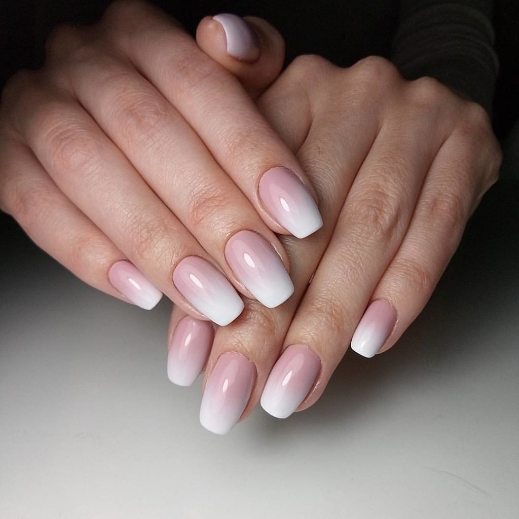Омбре розовый с белым на ногтях