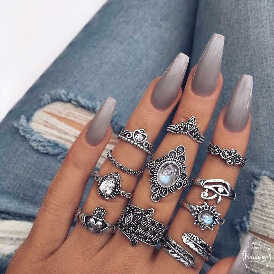 Серый маникюр миндаль