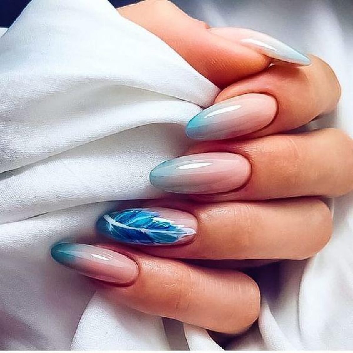 Маникюр омбре голубой