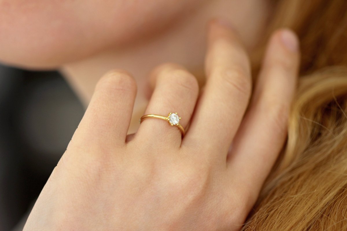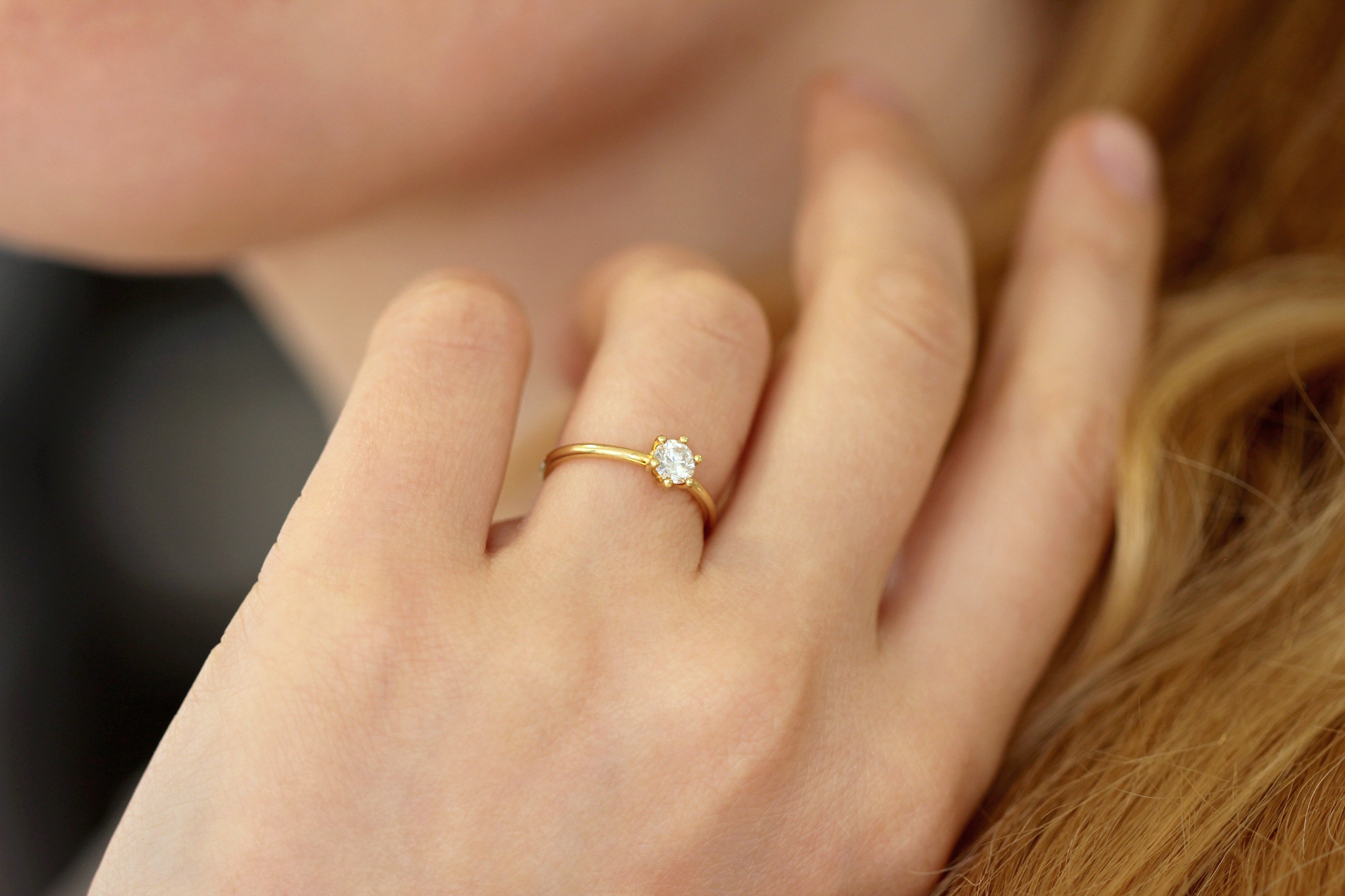 Кольцо с бриллиантом на пальце