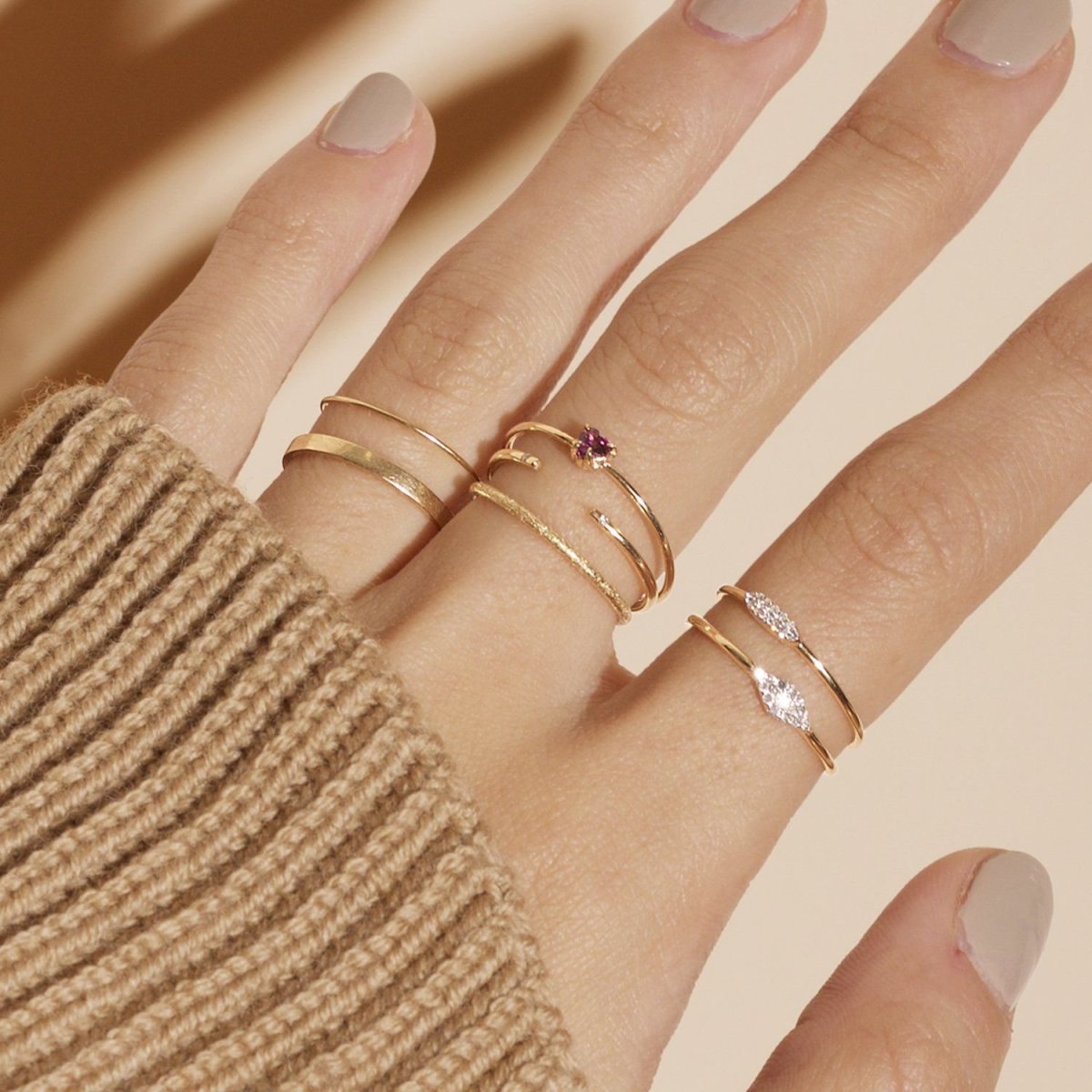 Тонкие кольца на пальцах