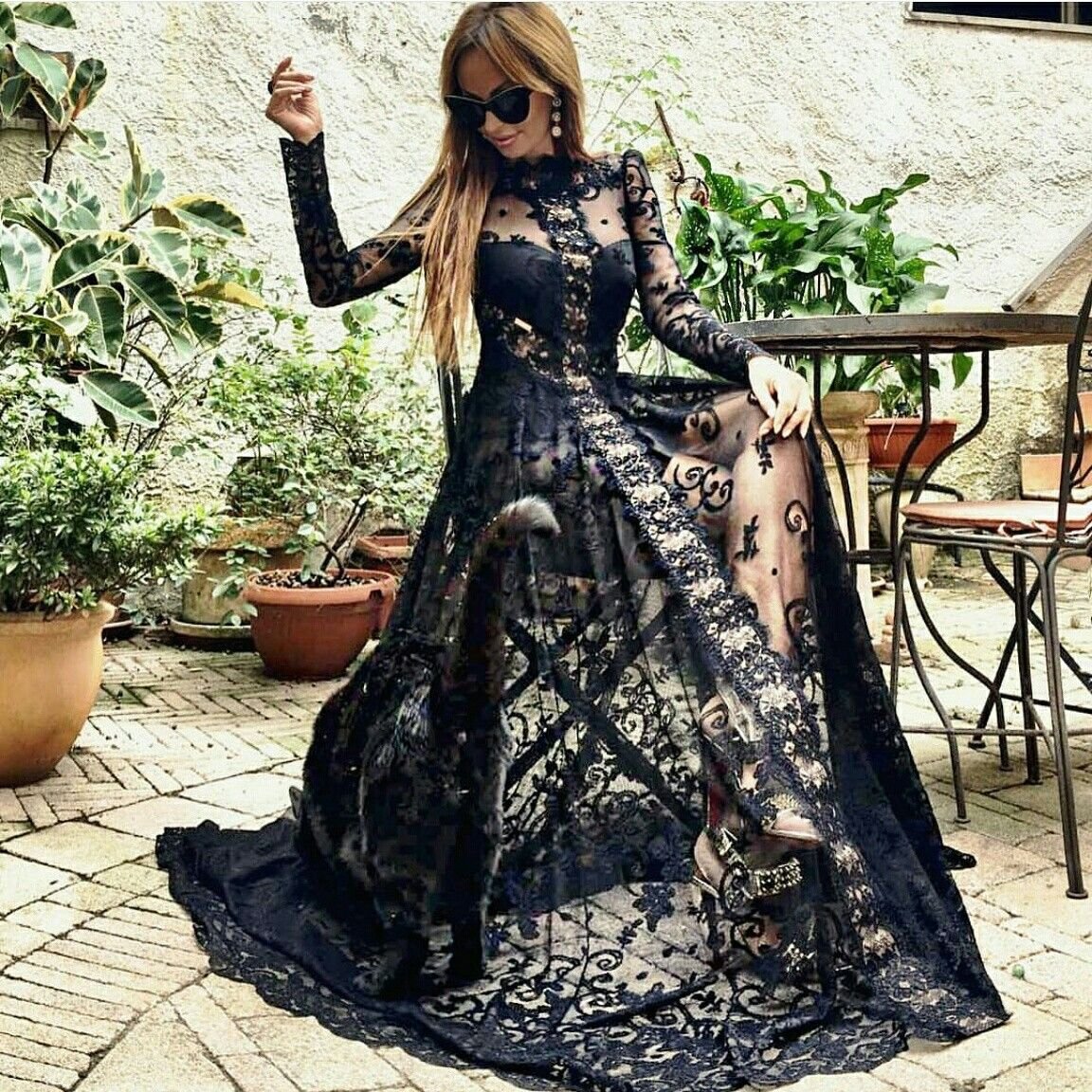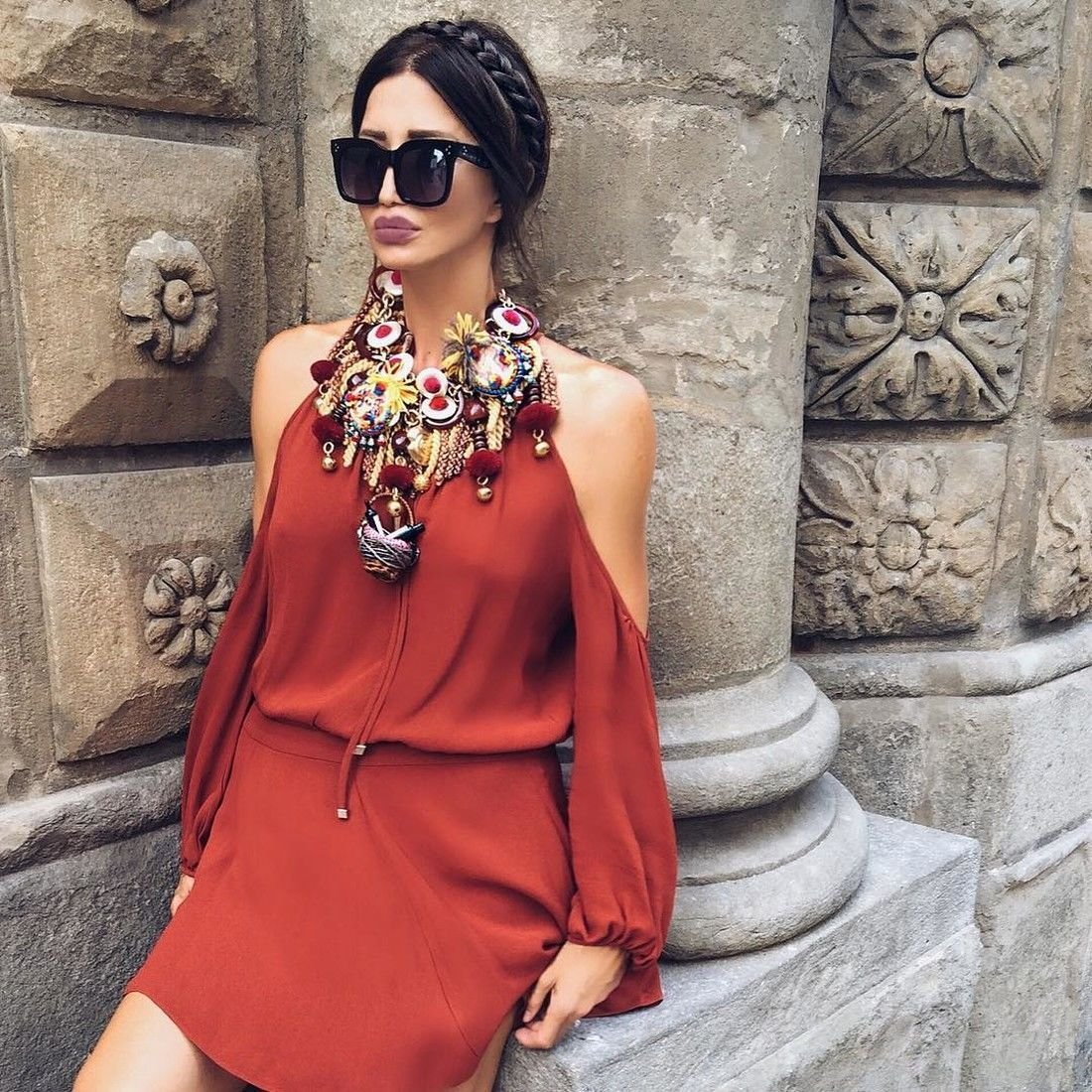 Брюнетка в коктейльном платье в инстаграмме