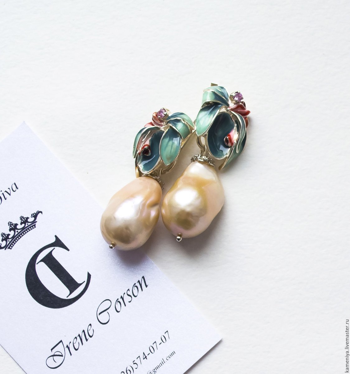 Сережки Сергей Слотин золотые с барочным жемчугом