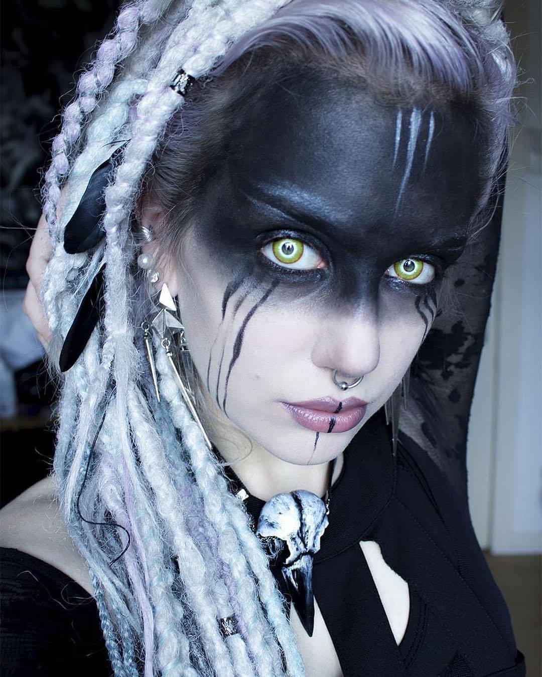 Макияж ведьмы с белыми линзами