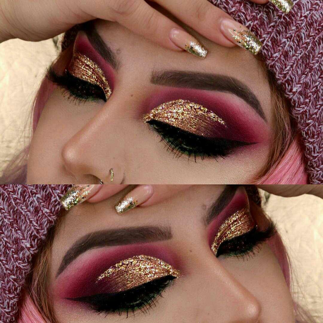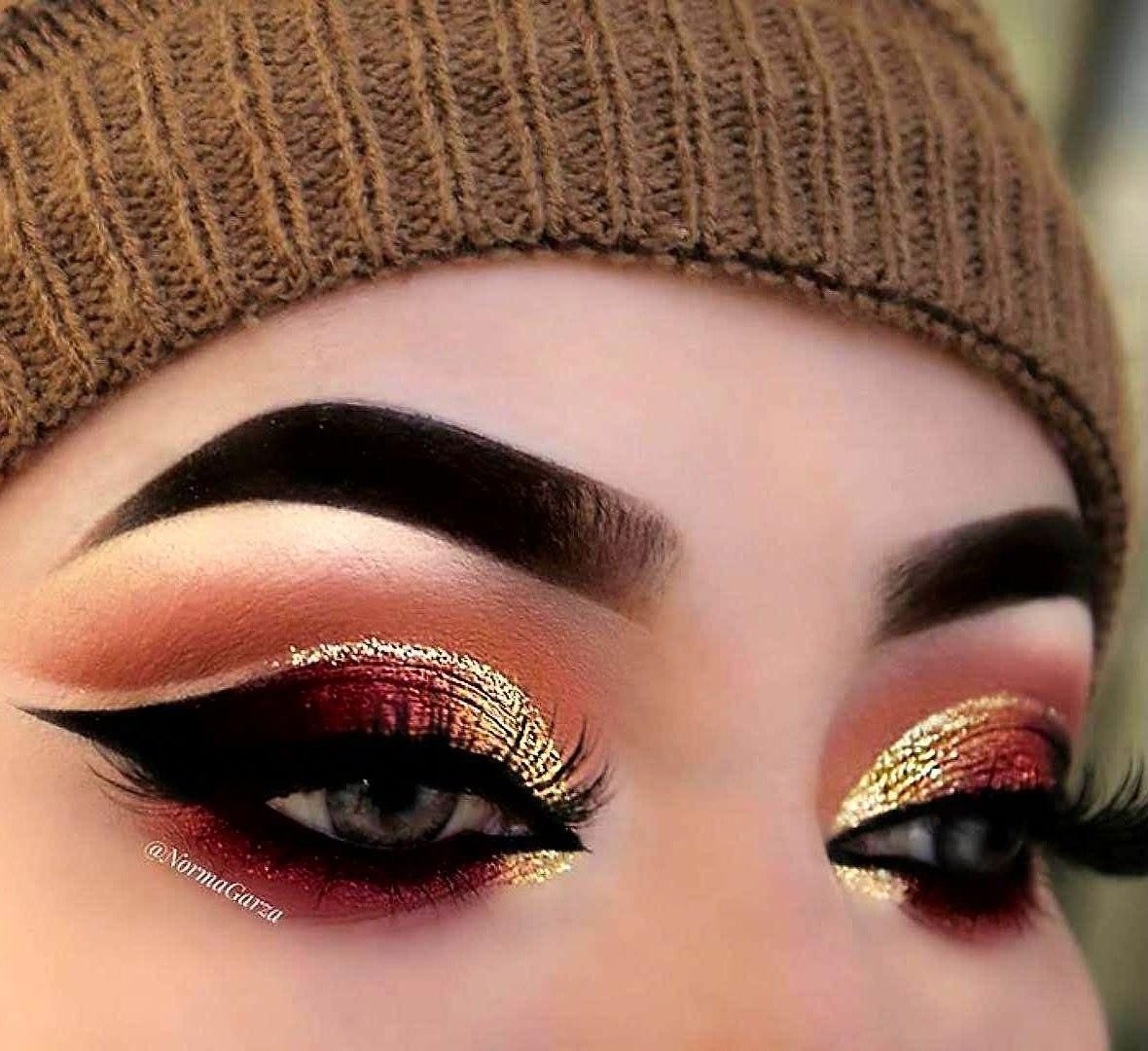Красно золотой макияж