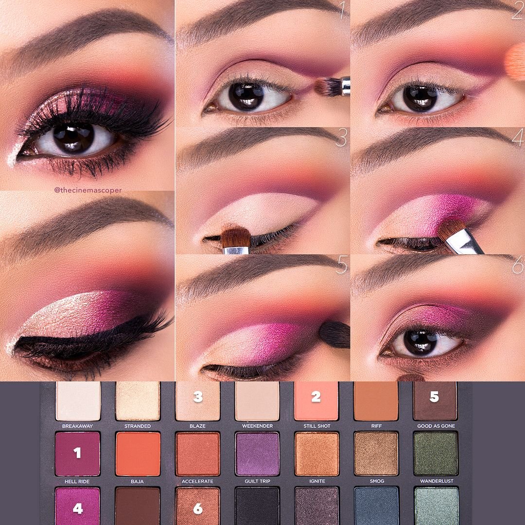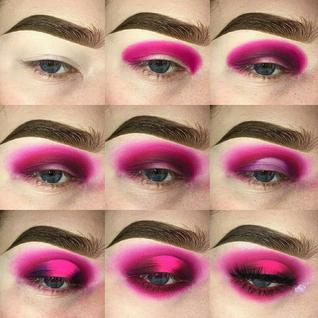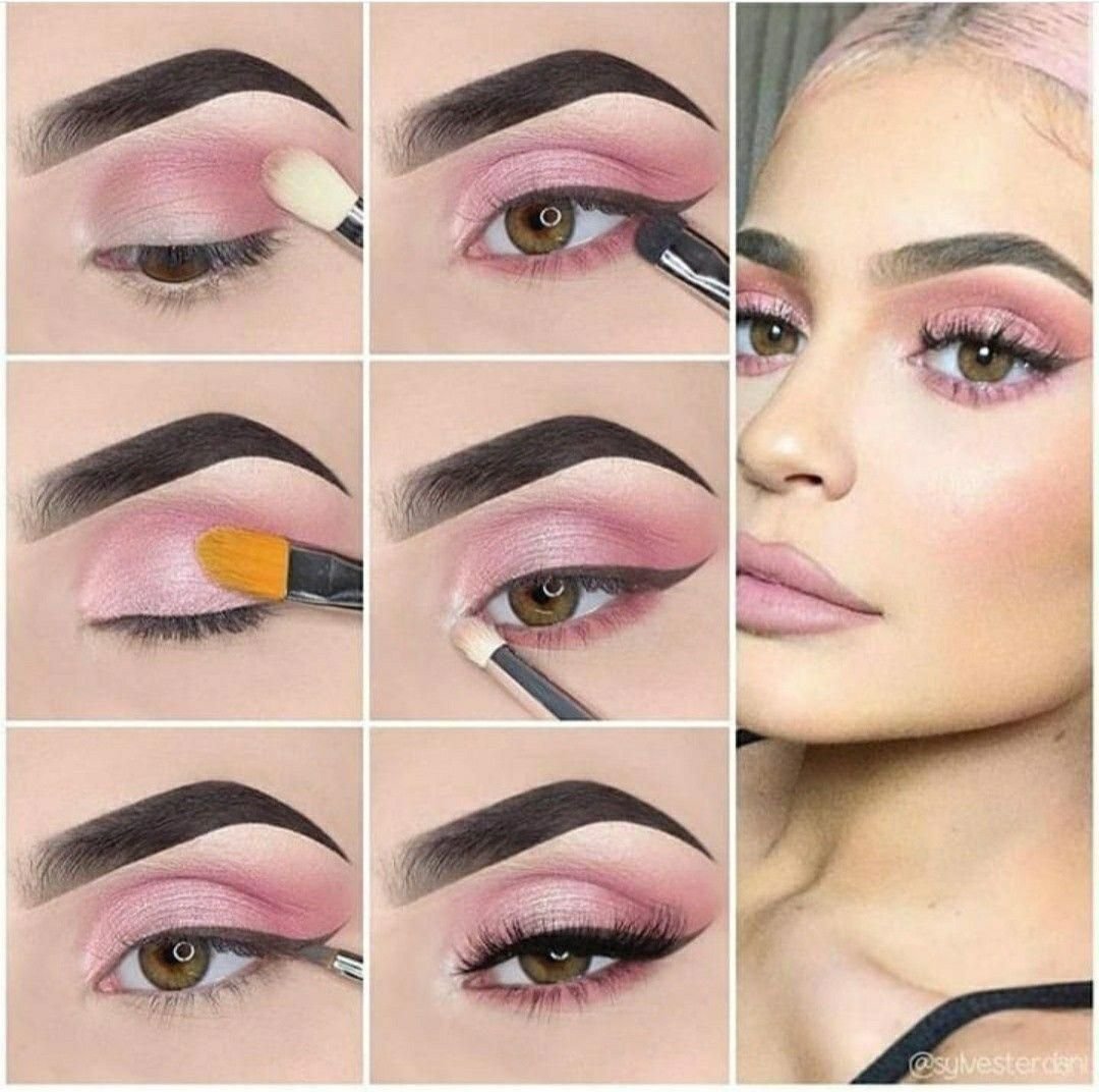 Розовый макияж глаз пошагово