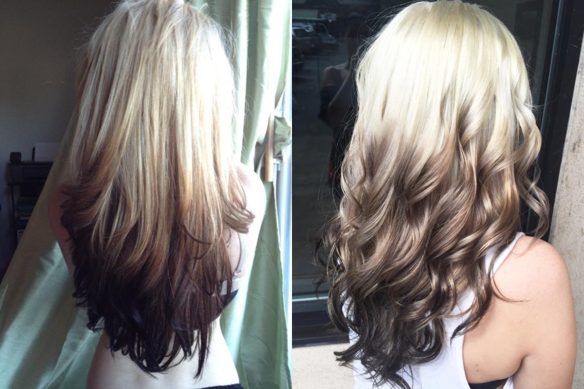 Окрашивание тёмный низ светлый верх на короткие волосы