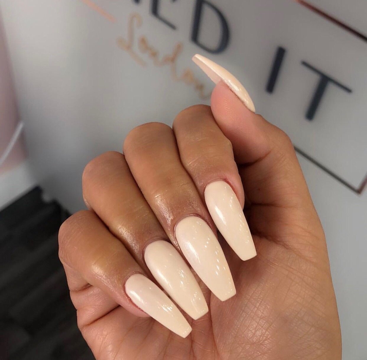 Бежевый маникюр на длинные ногти