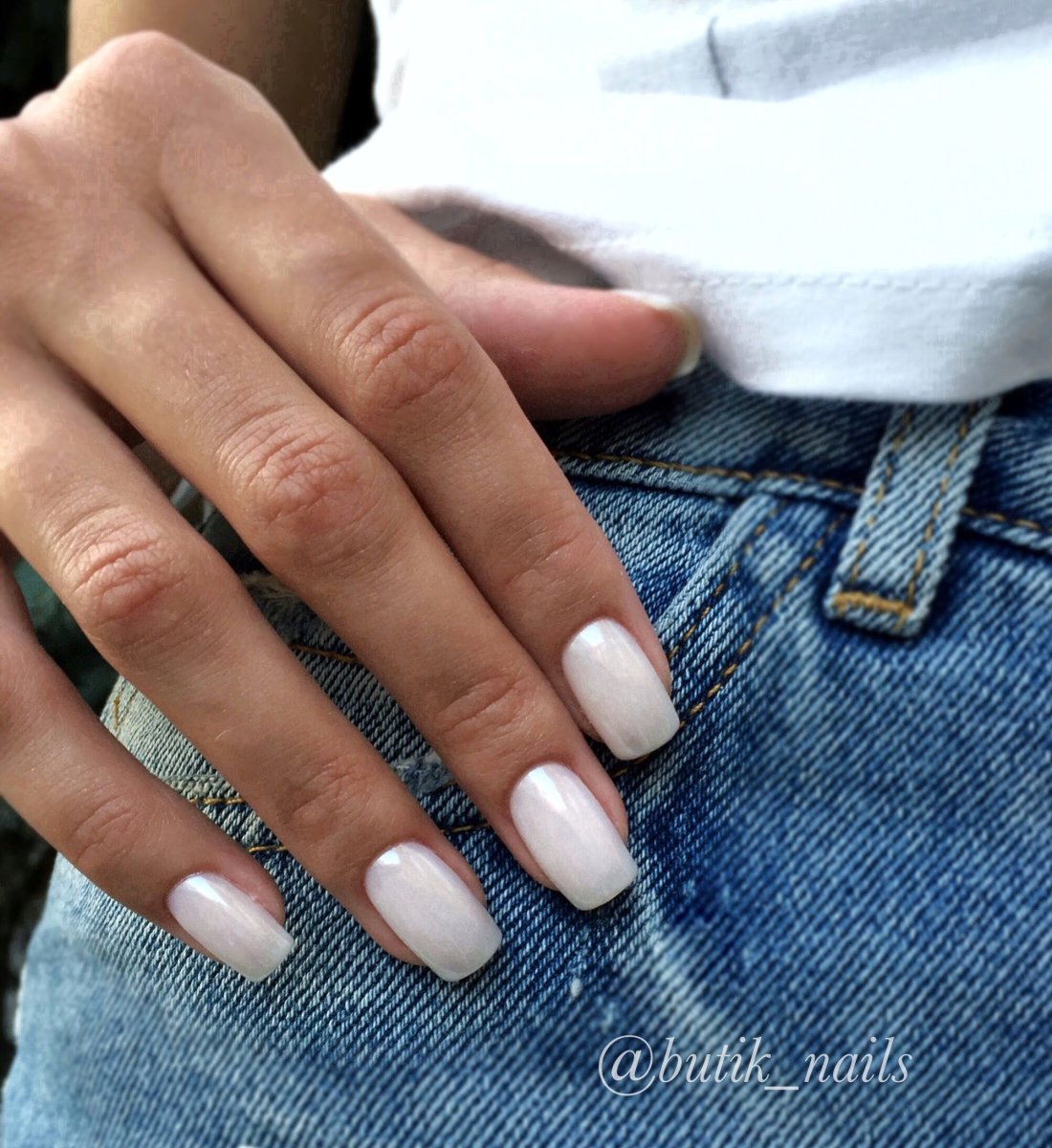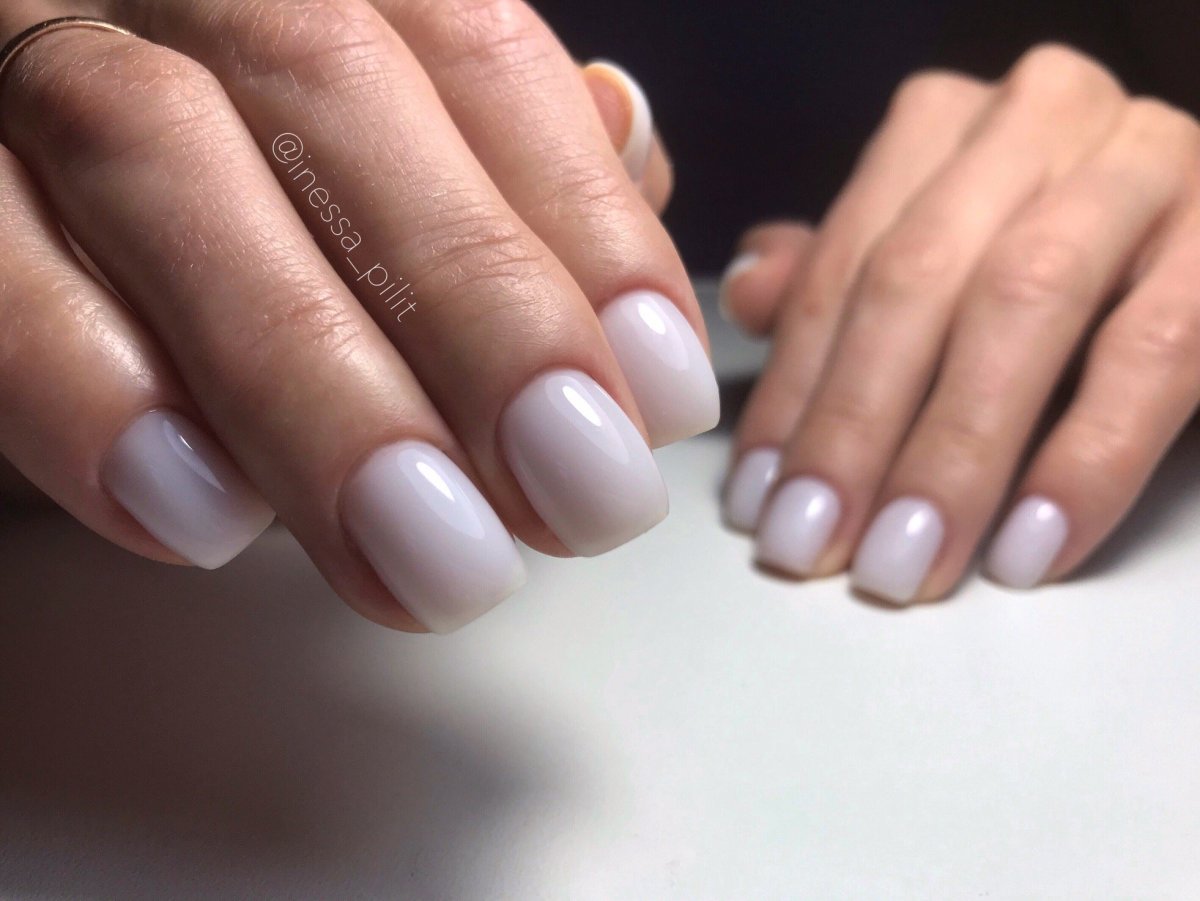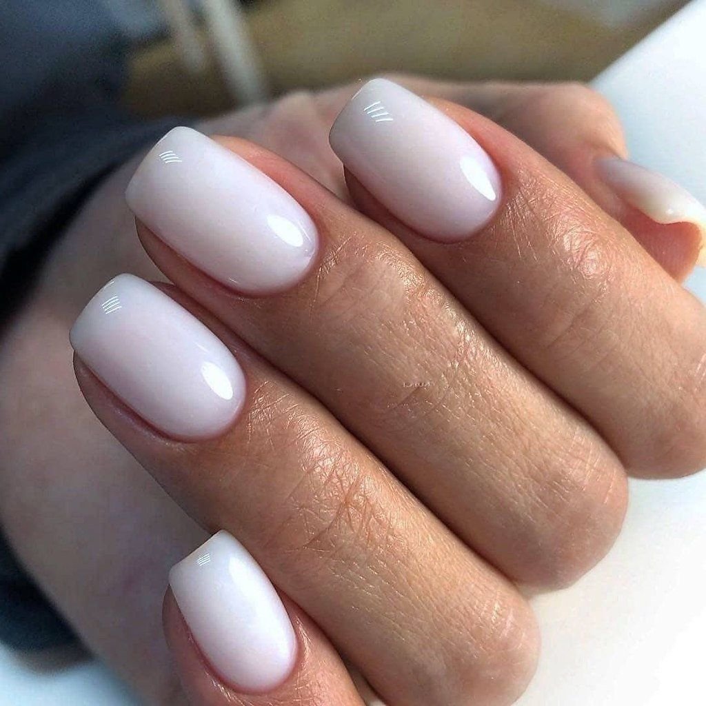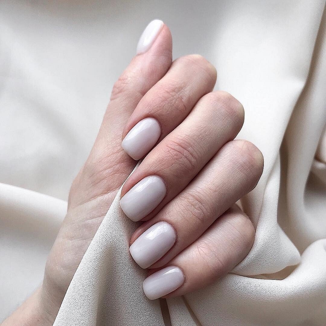 Молочный маникюр на короткие квадратные ногти