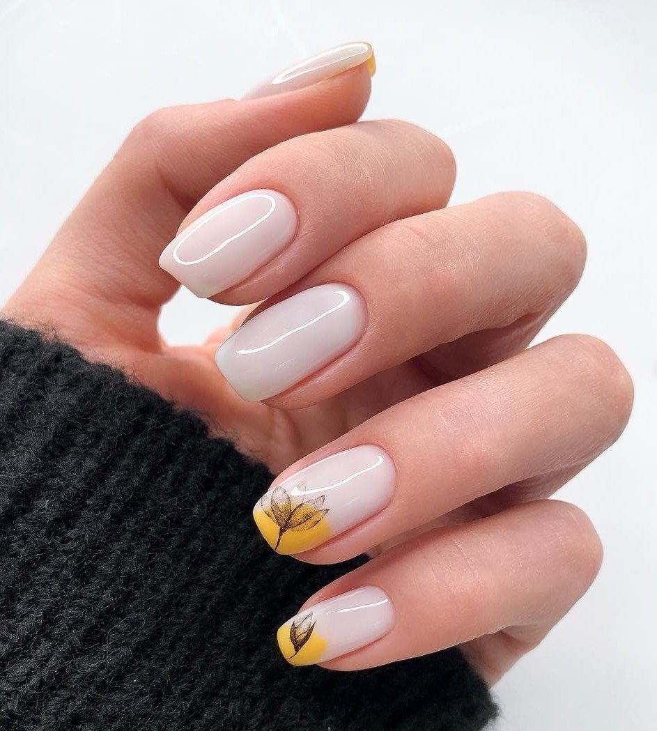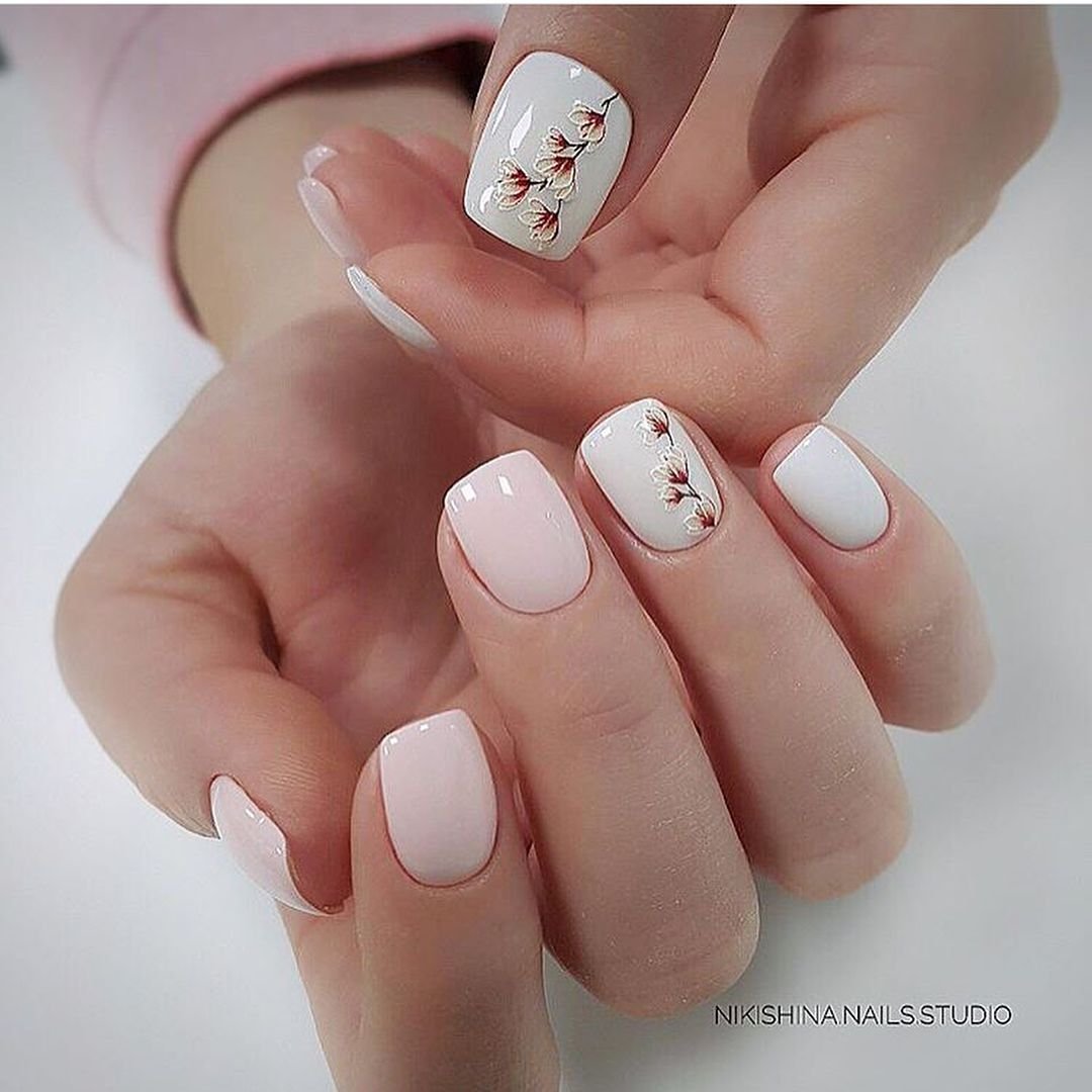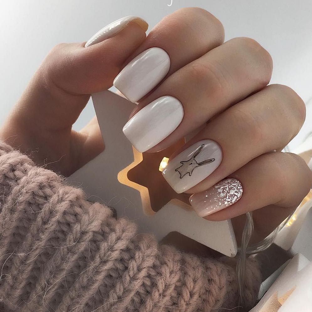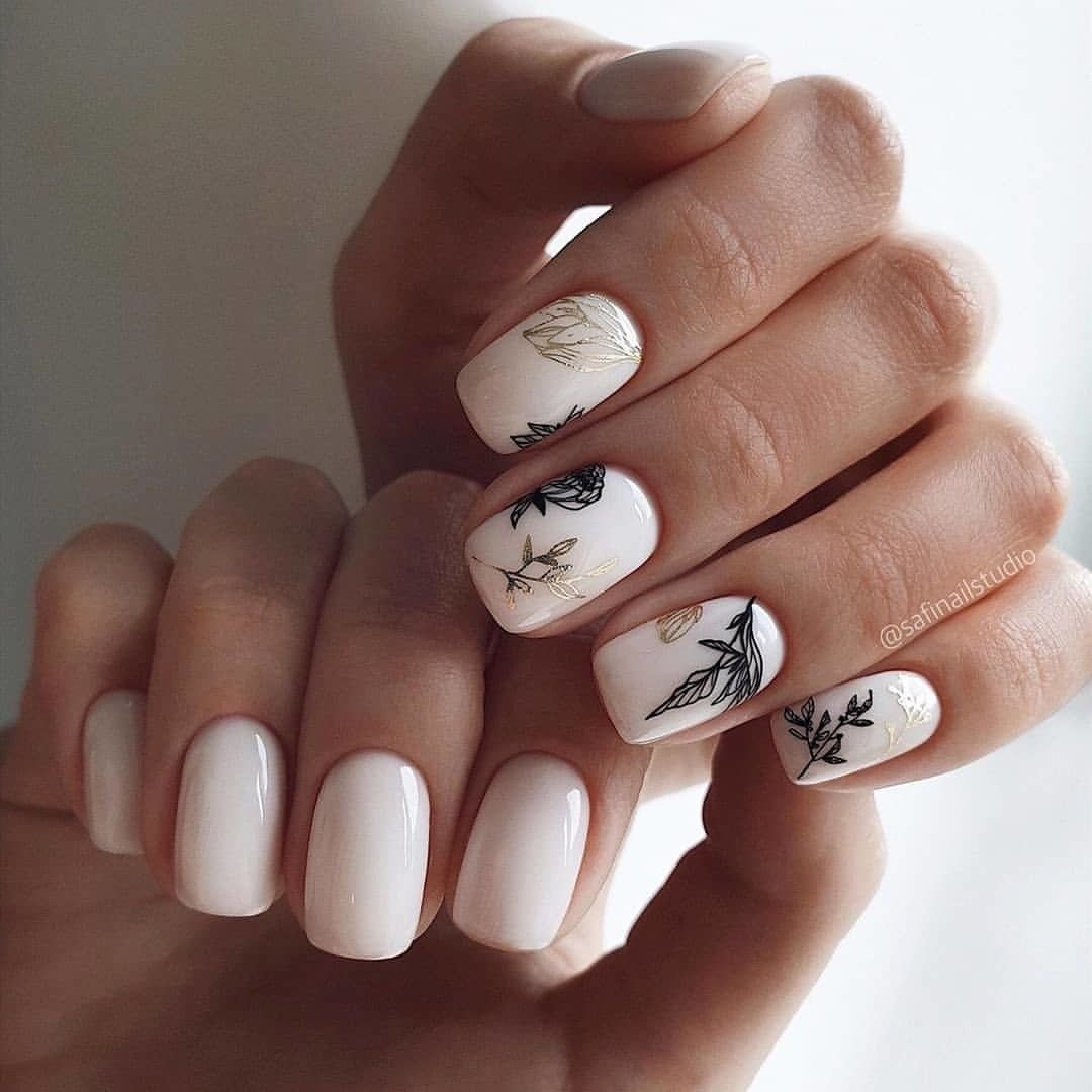 Молочный маникюр с дизайном