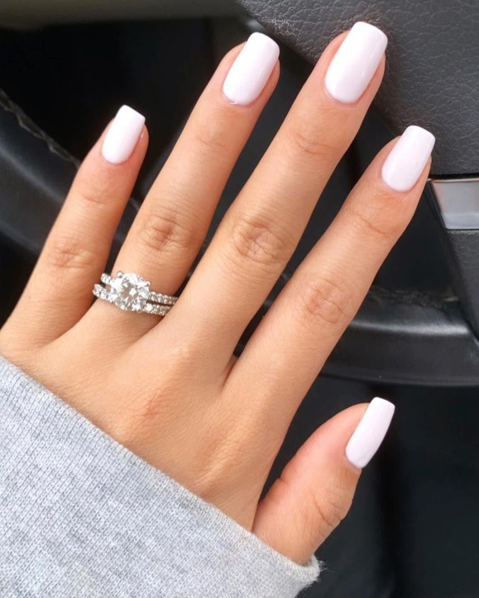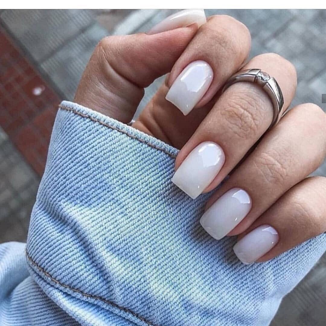 Белый молочный маникюр на квадратные ногти