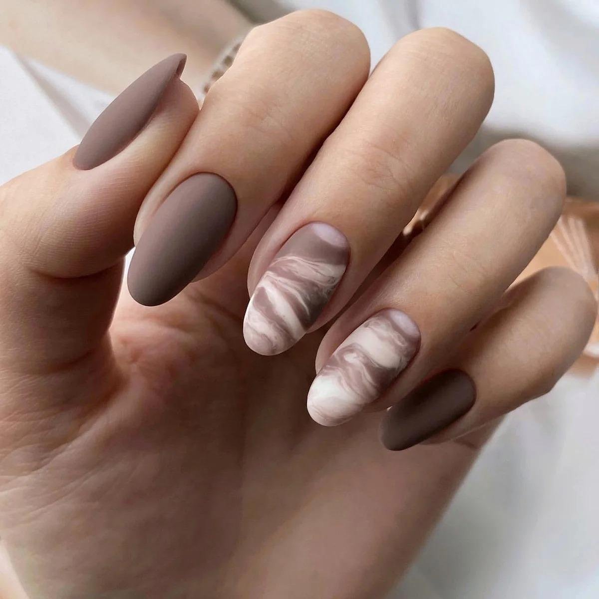 Маникюр в кофейно-молочных тонах