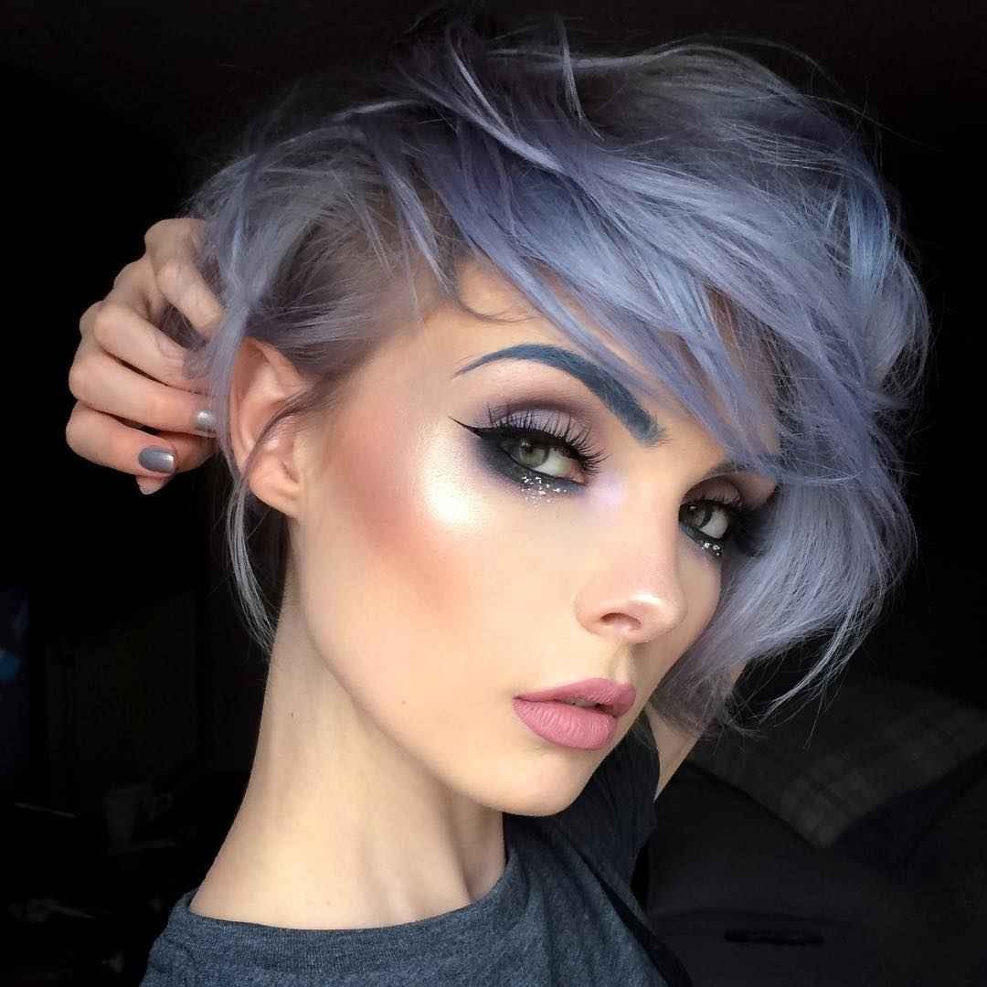 Серо голубые волосы короткая стрижка