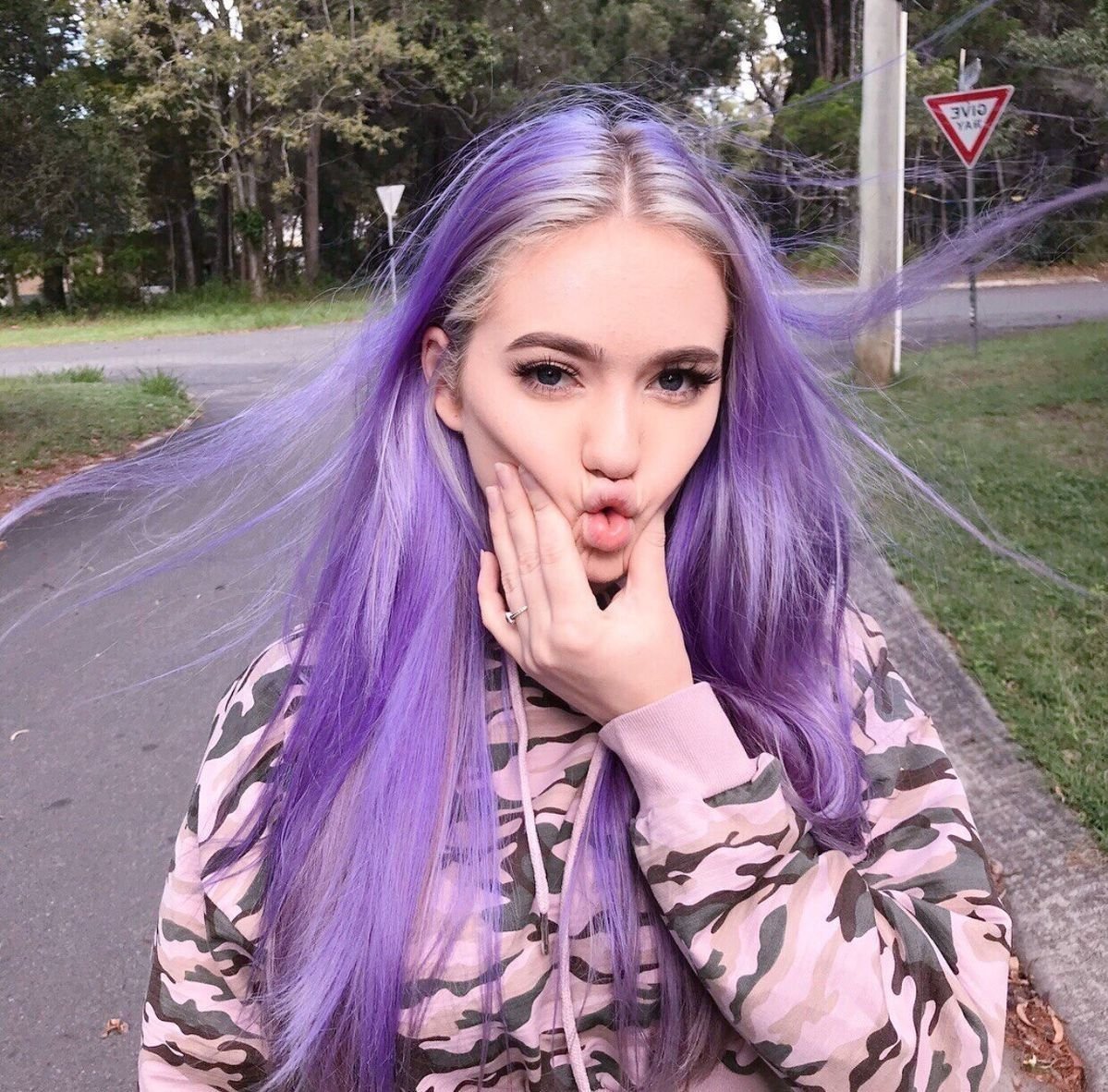 Алина Олешева с фиолетовыми волосами