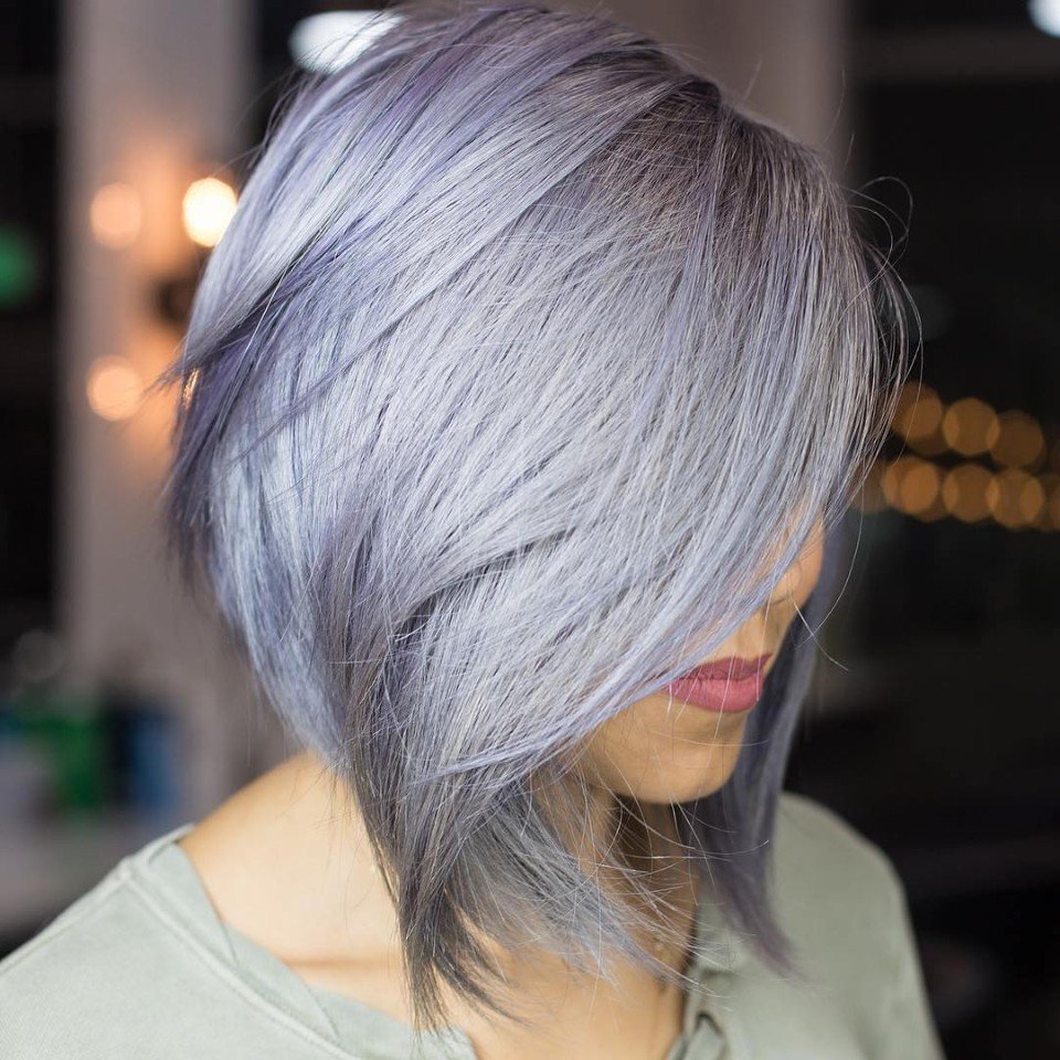 Сиренево-серебристый оттенок волос стрижки