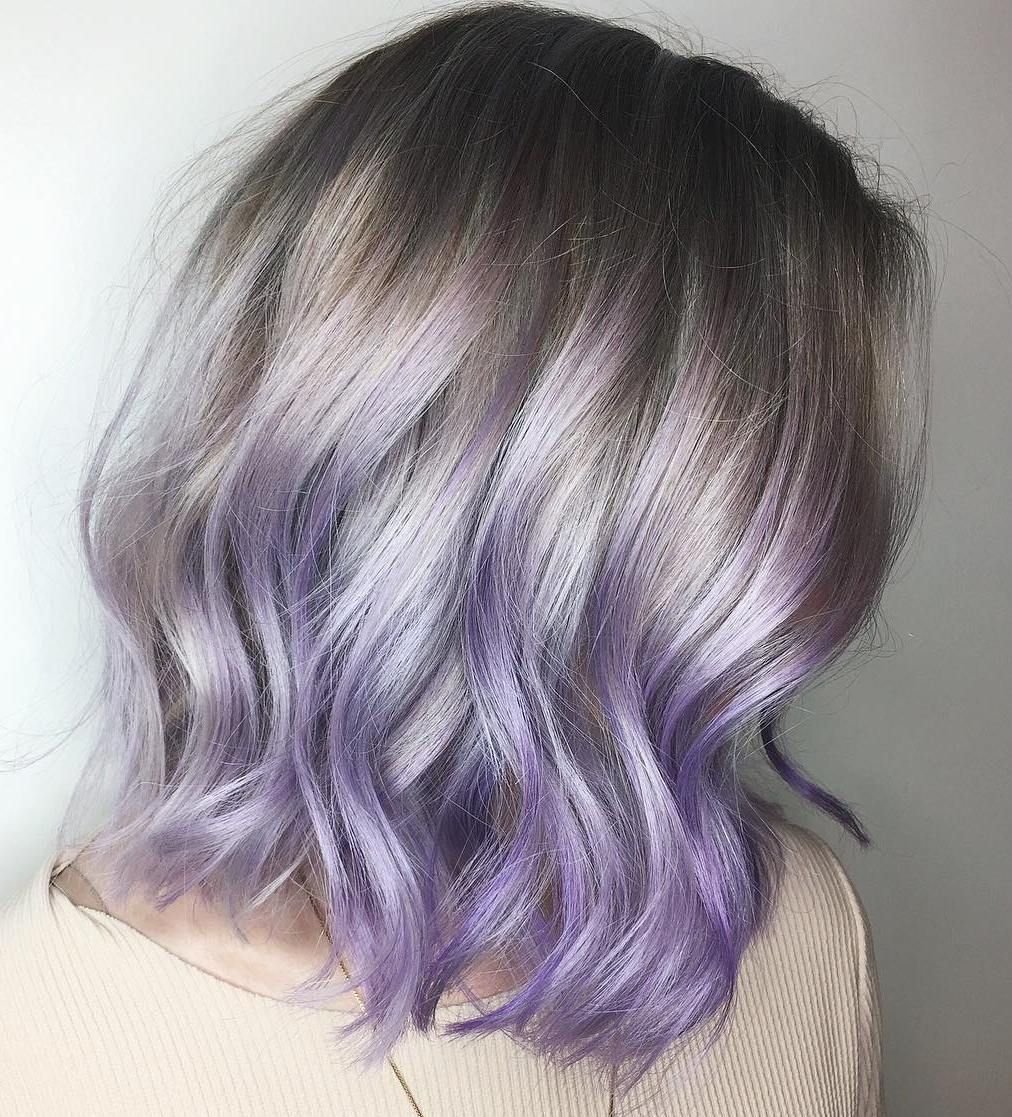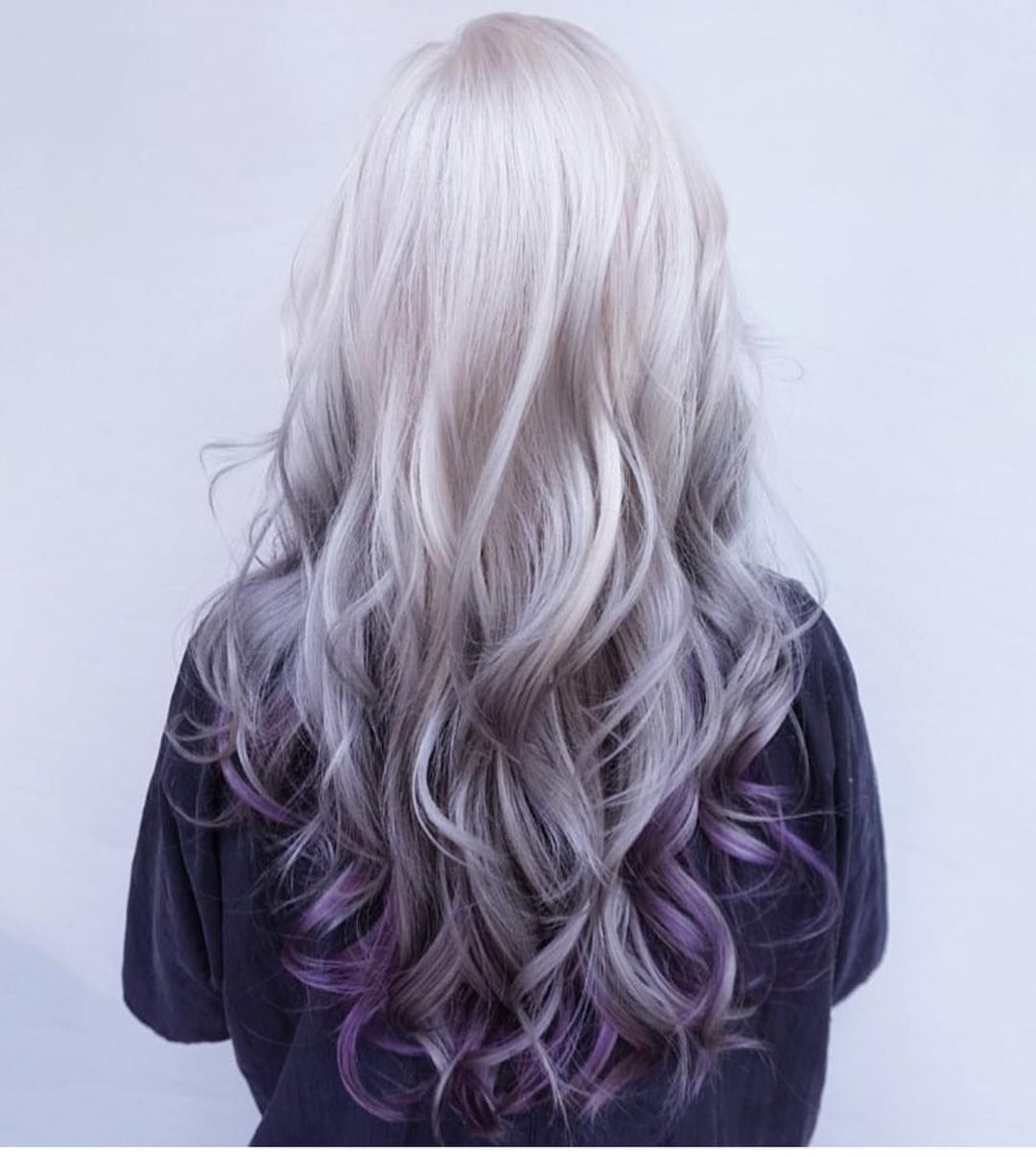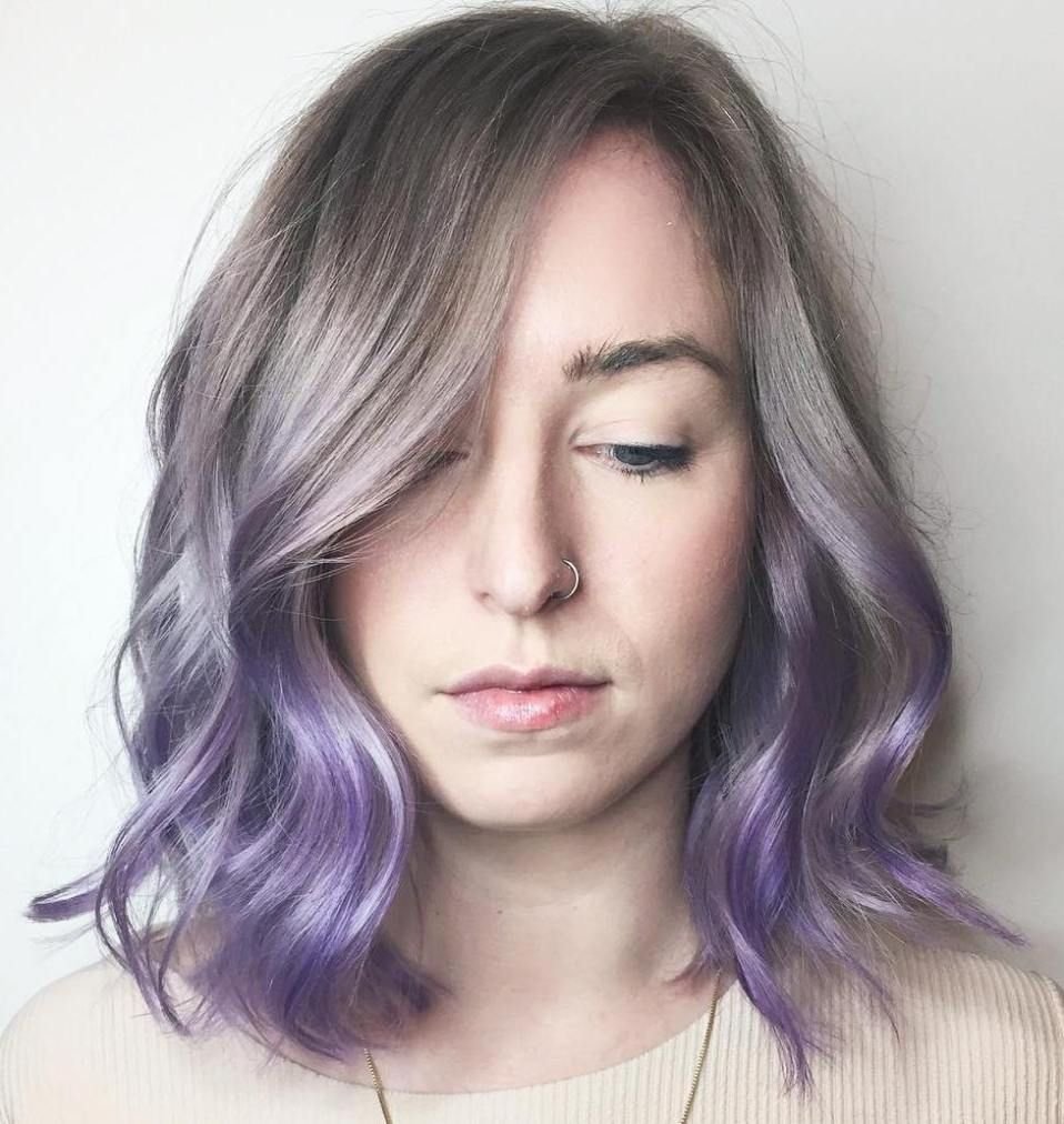 Пепельные волосы с сиреневыми кончиками