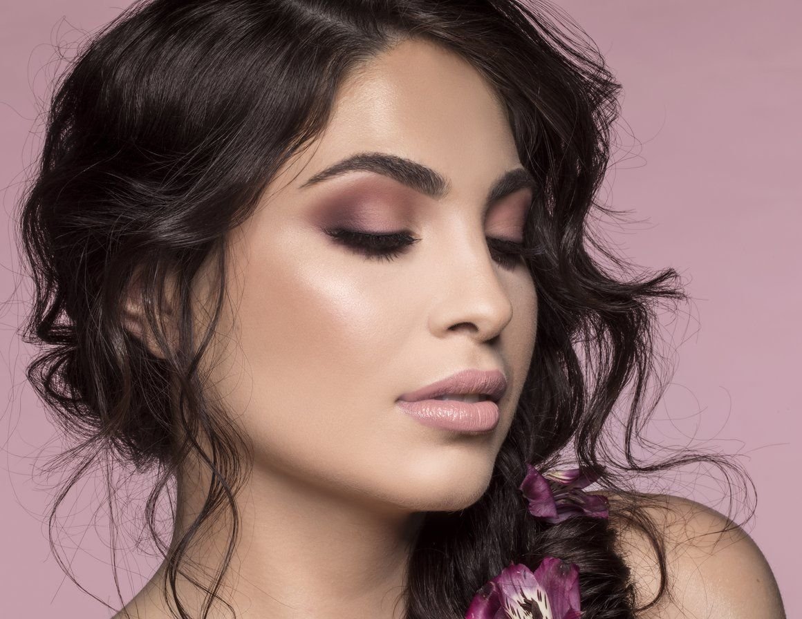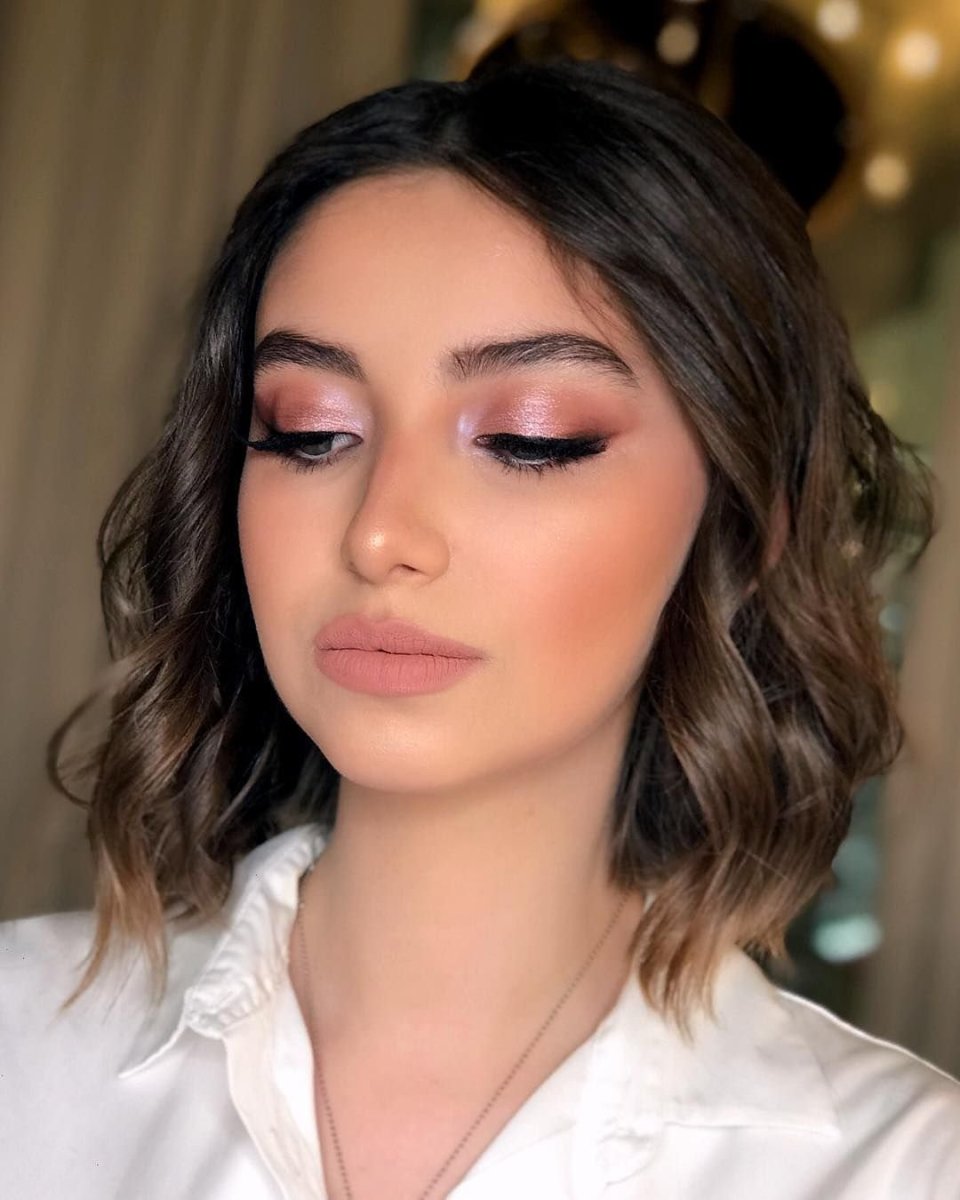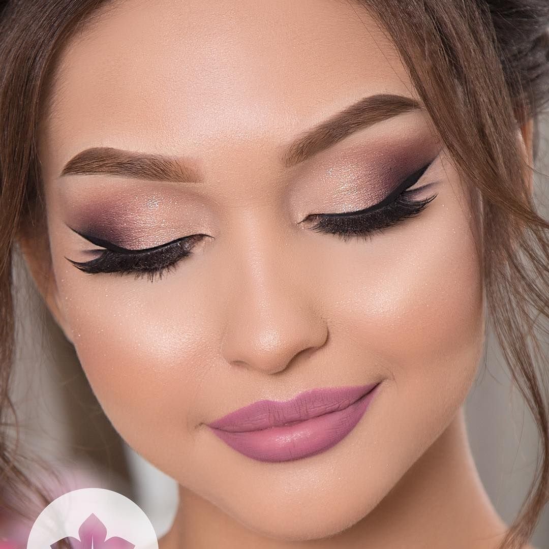 Макияж под розовое платье для брюнеток
