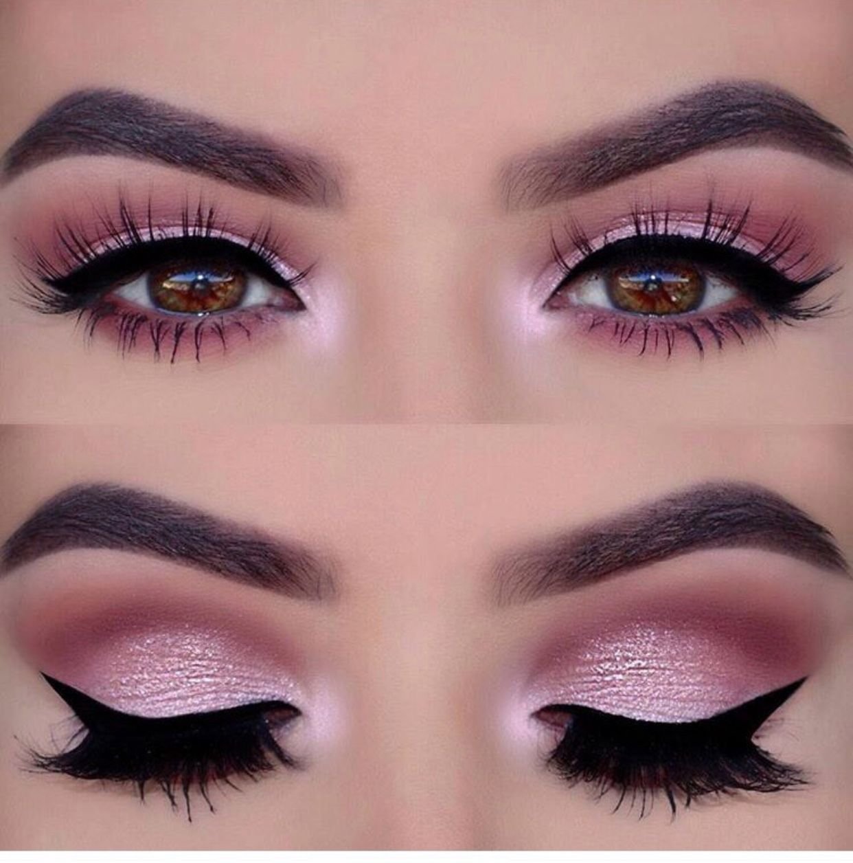 Блестящий макияж для карих глаз