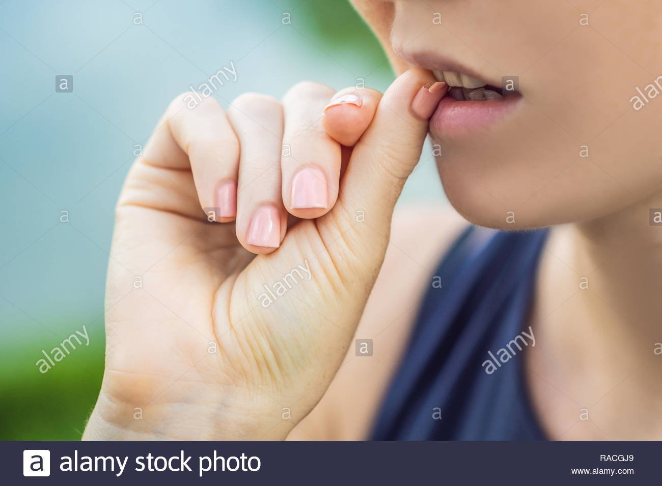 Девушка грызет ногти