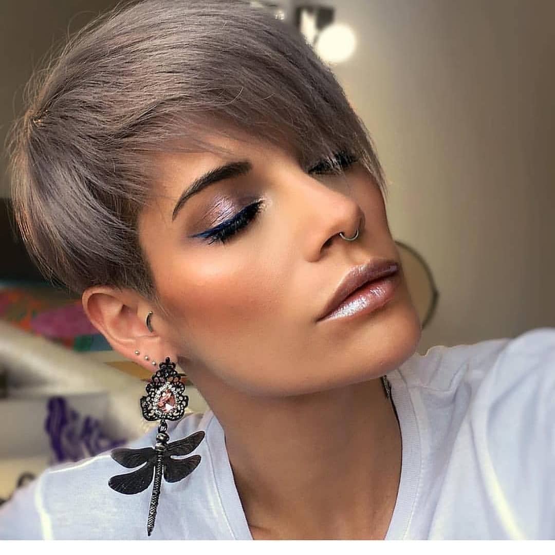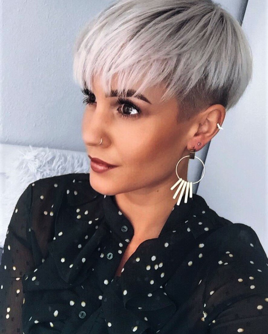 Стрижка Пикси на короткие волосы в пепельном оттенке