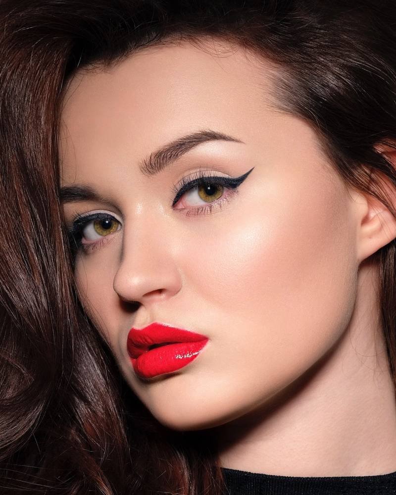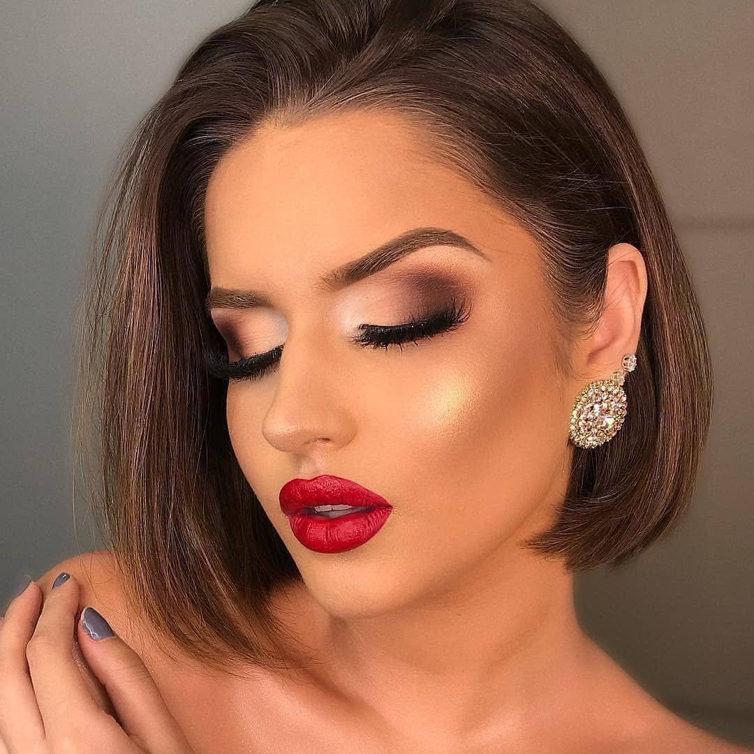 Классический макияж с красной помадой