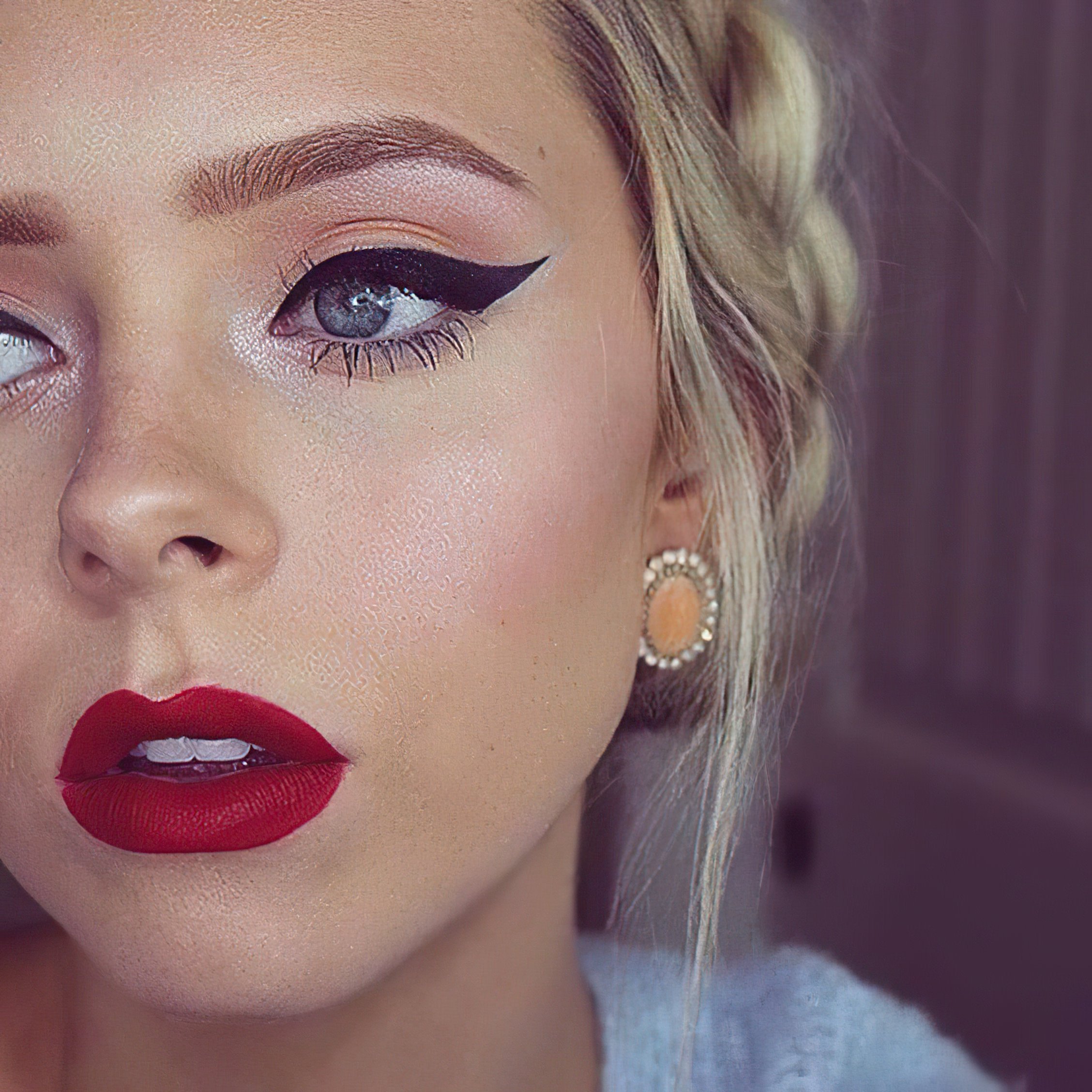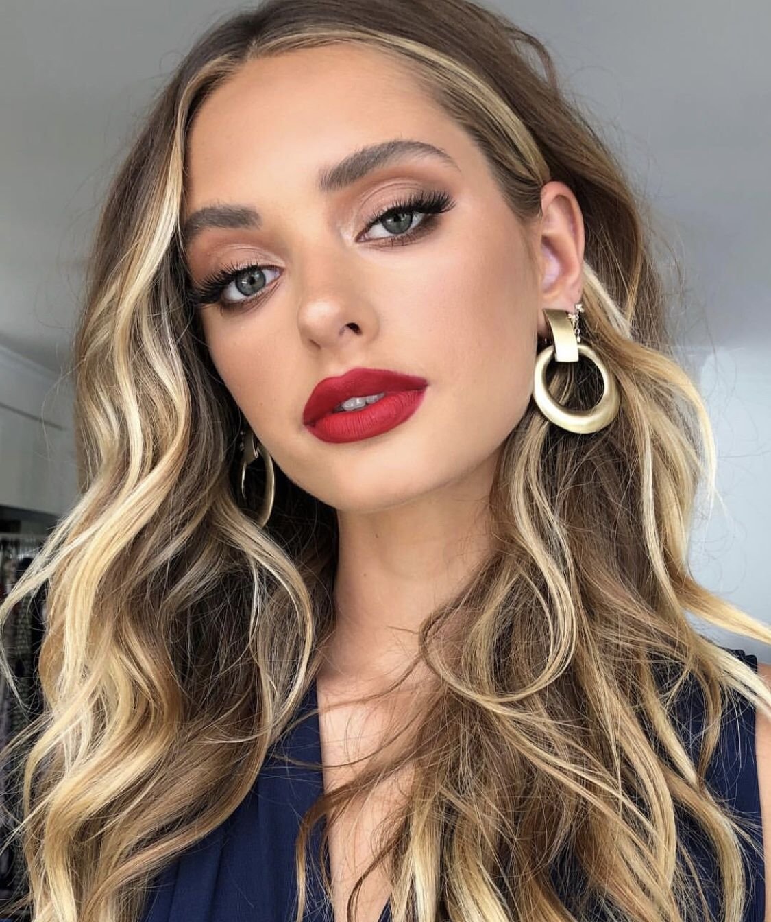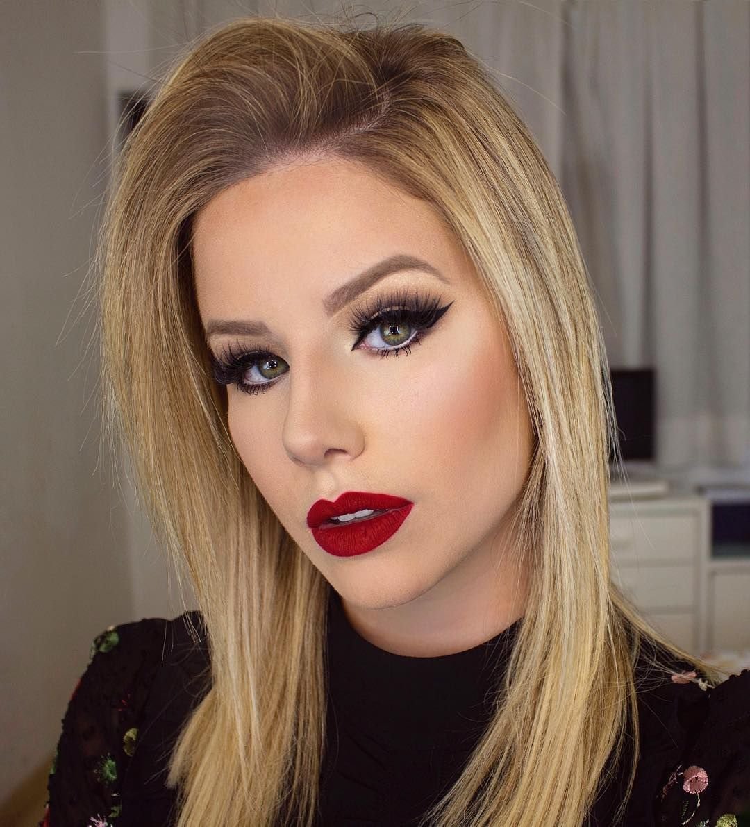 Макияж стрелки и красная помада для блондинок