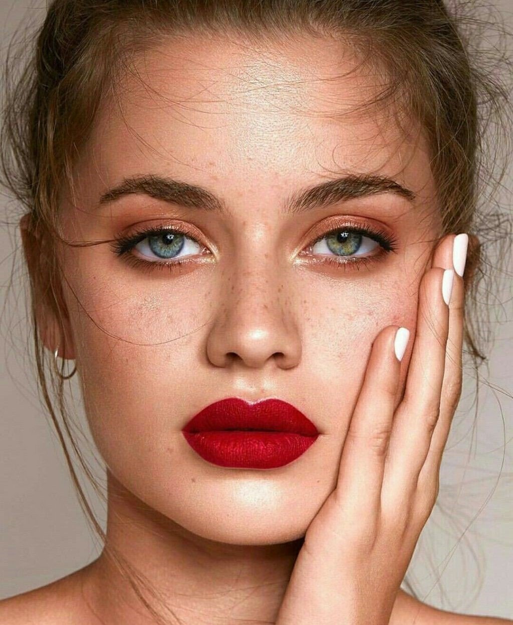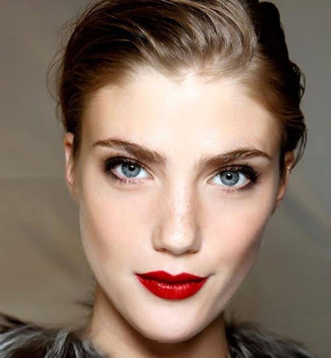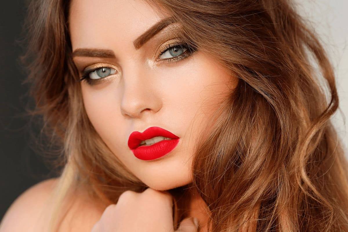 Макияж с красной помадой для русых