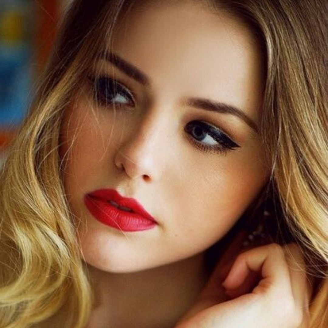 Девушка с яркой помадой
