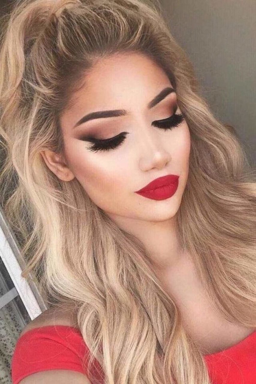 Вечерний макияж с красной помадой для блондинок