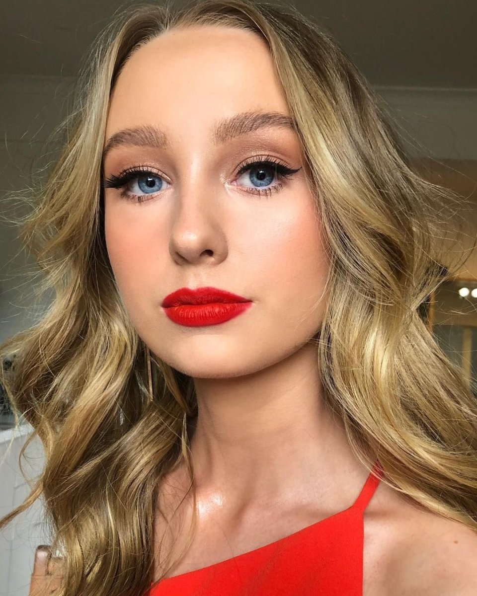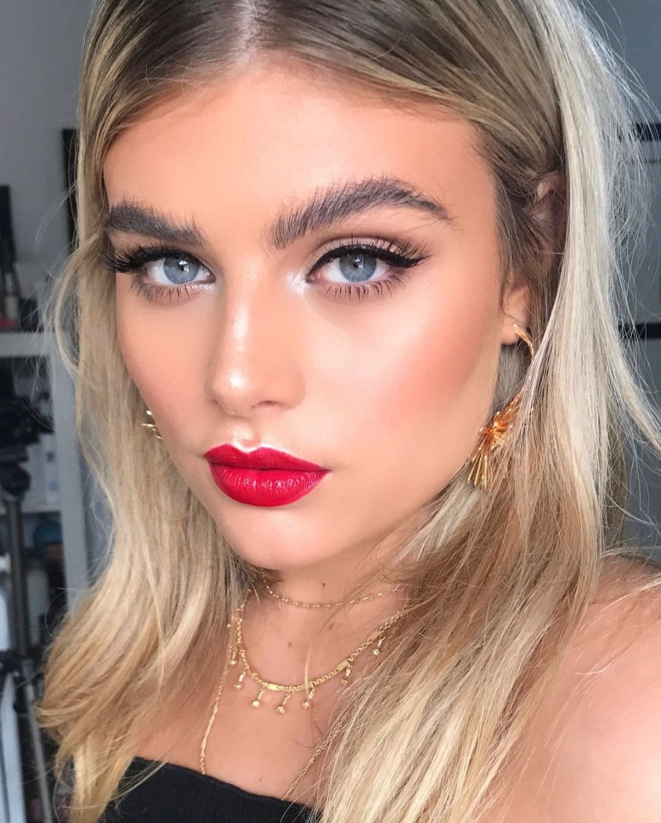 Макияж с красными губами для блондинок