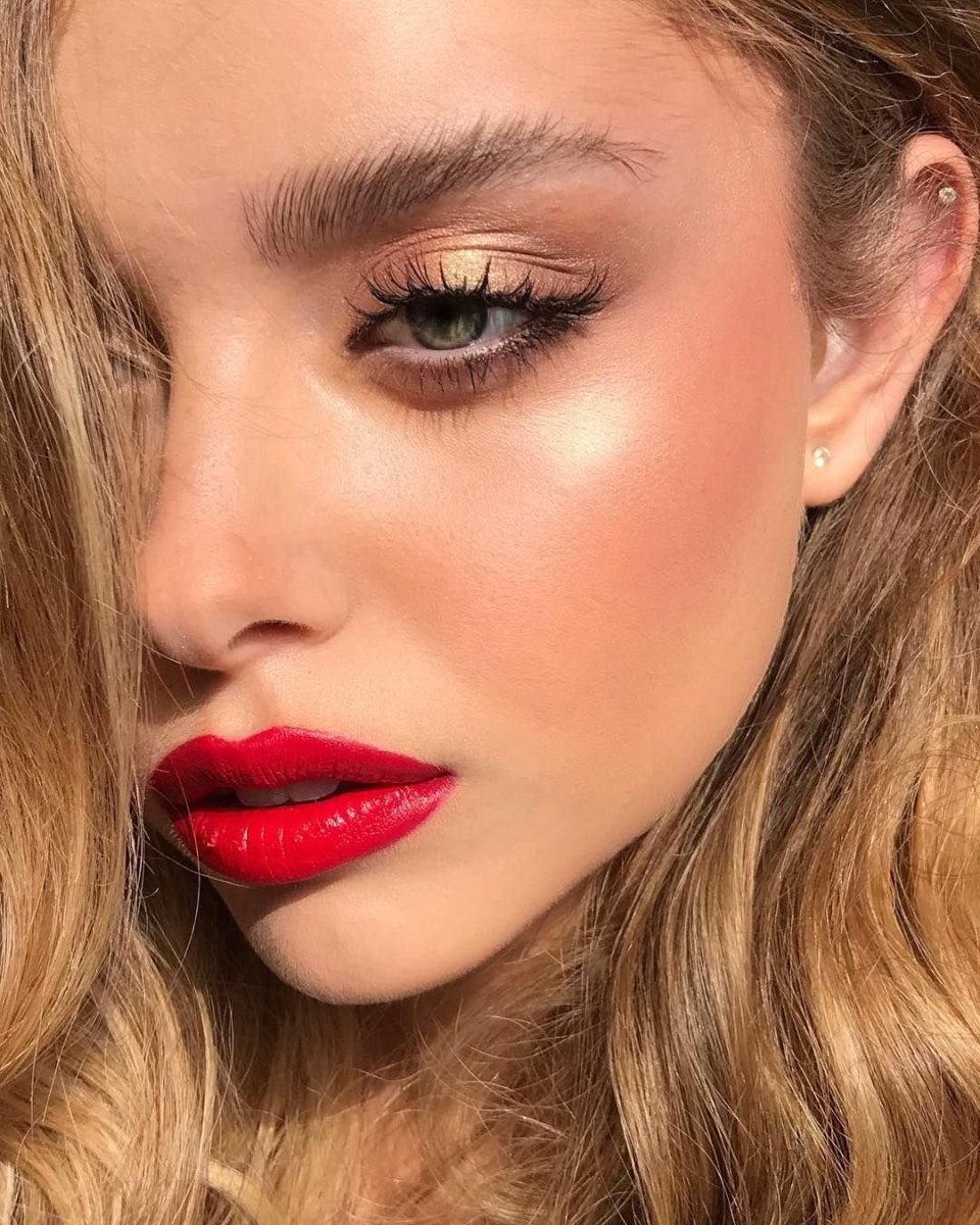 Красная помада в макияже 2020